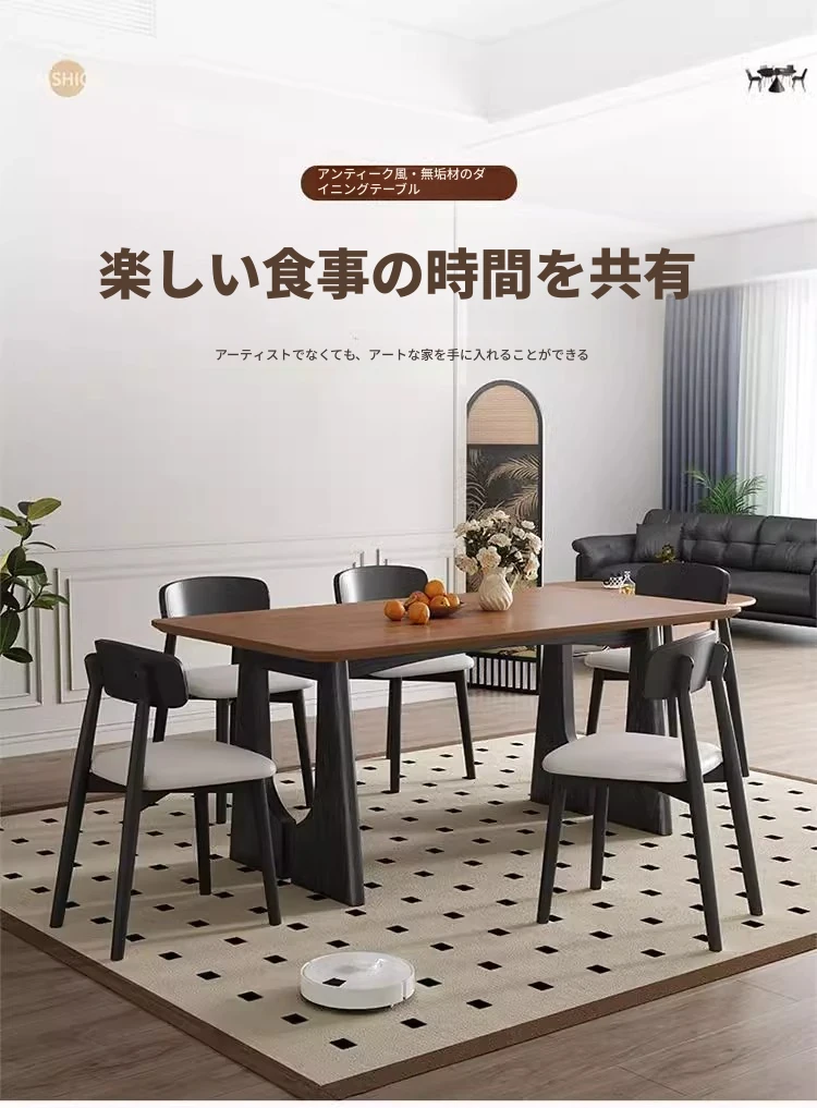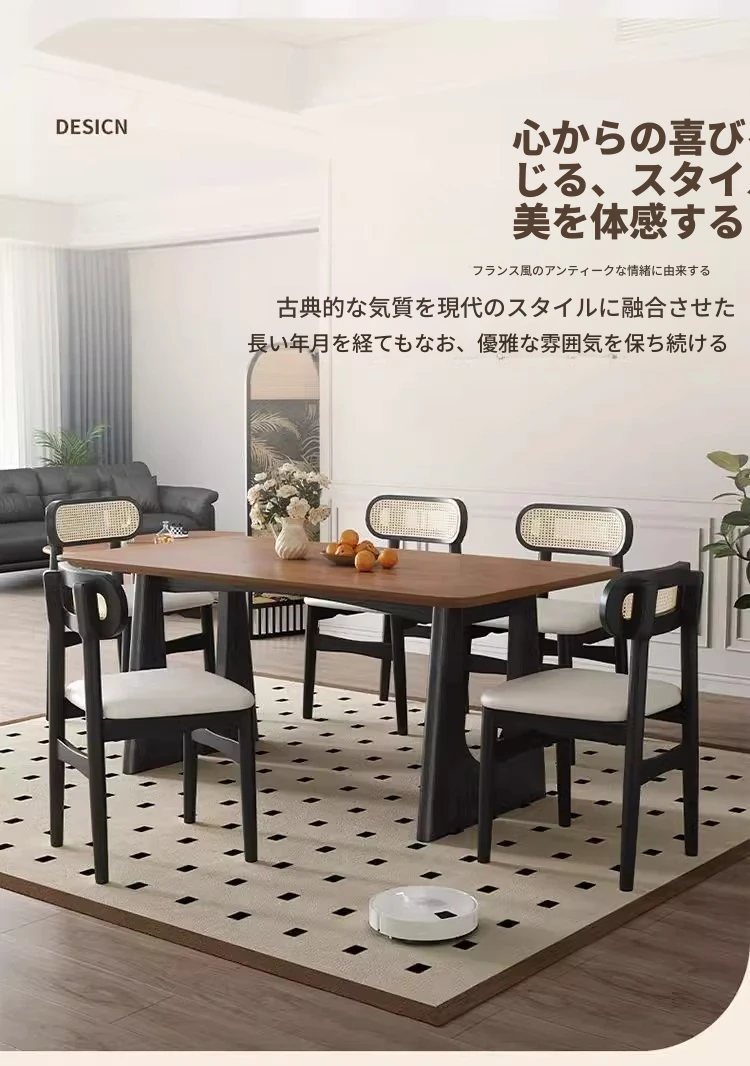おしゃれなフレンチスタイルの小型ダイニングテーブル!実用的な組み合わせで、上質なホワイトアッシュの無垢材を使用したレトロな楕円形テーブル。石のような岩板デザインで、家族の食卓にぴったり。