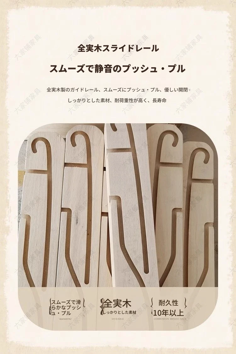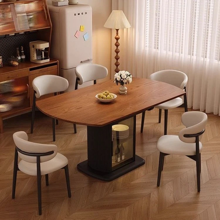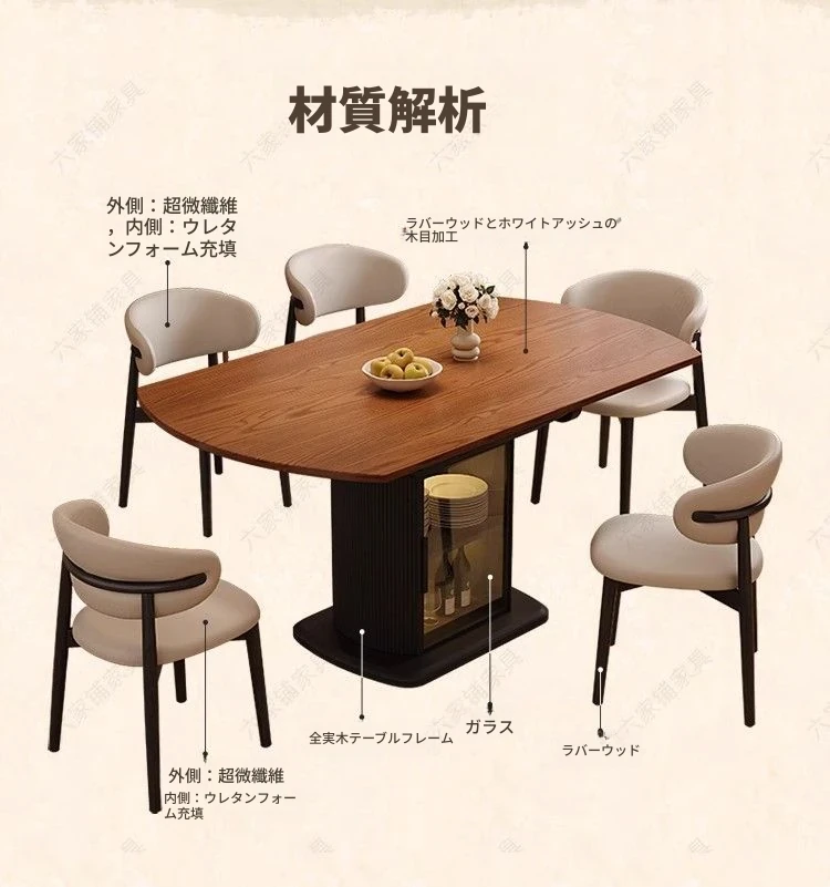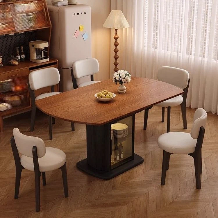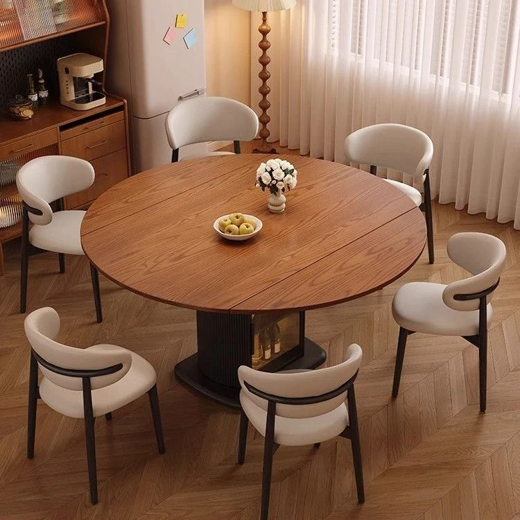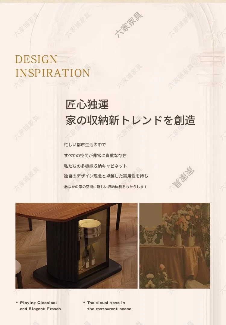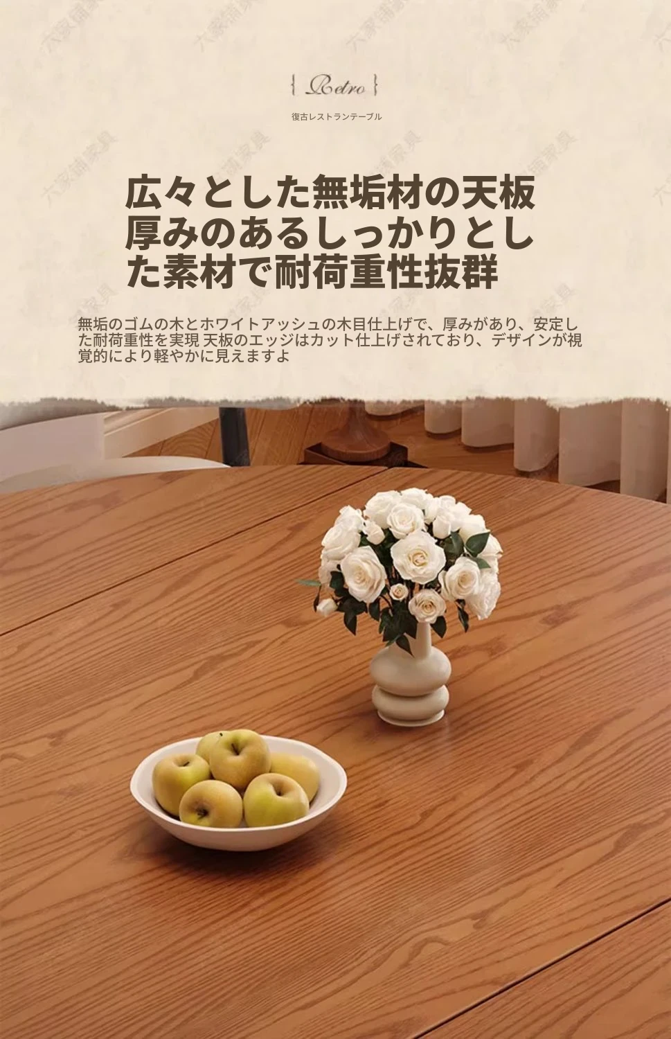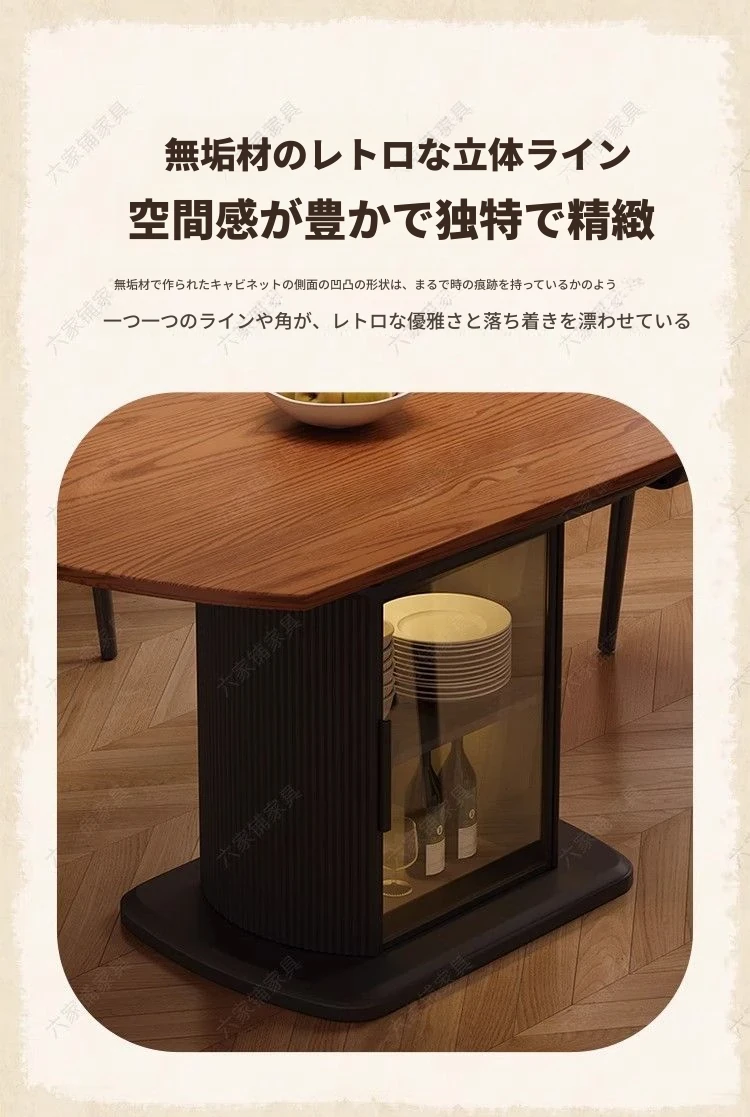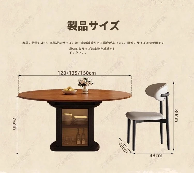 フランス風ヴィンテージ可伸縮実木ダイニングテーブル 多機能収納 家庭用小型折りたたみ二用途キャビネット 丸テーブルで、おしゃれで実用的な空間を演出!