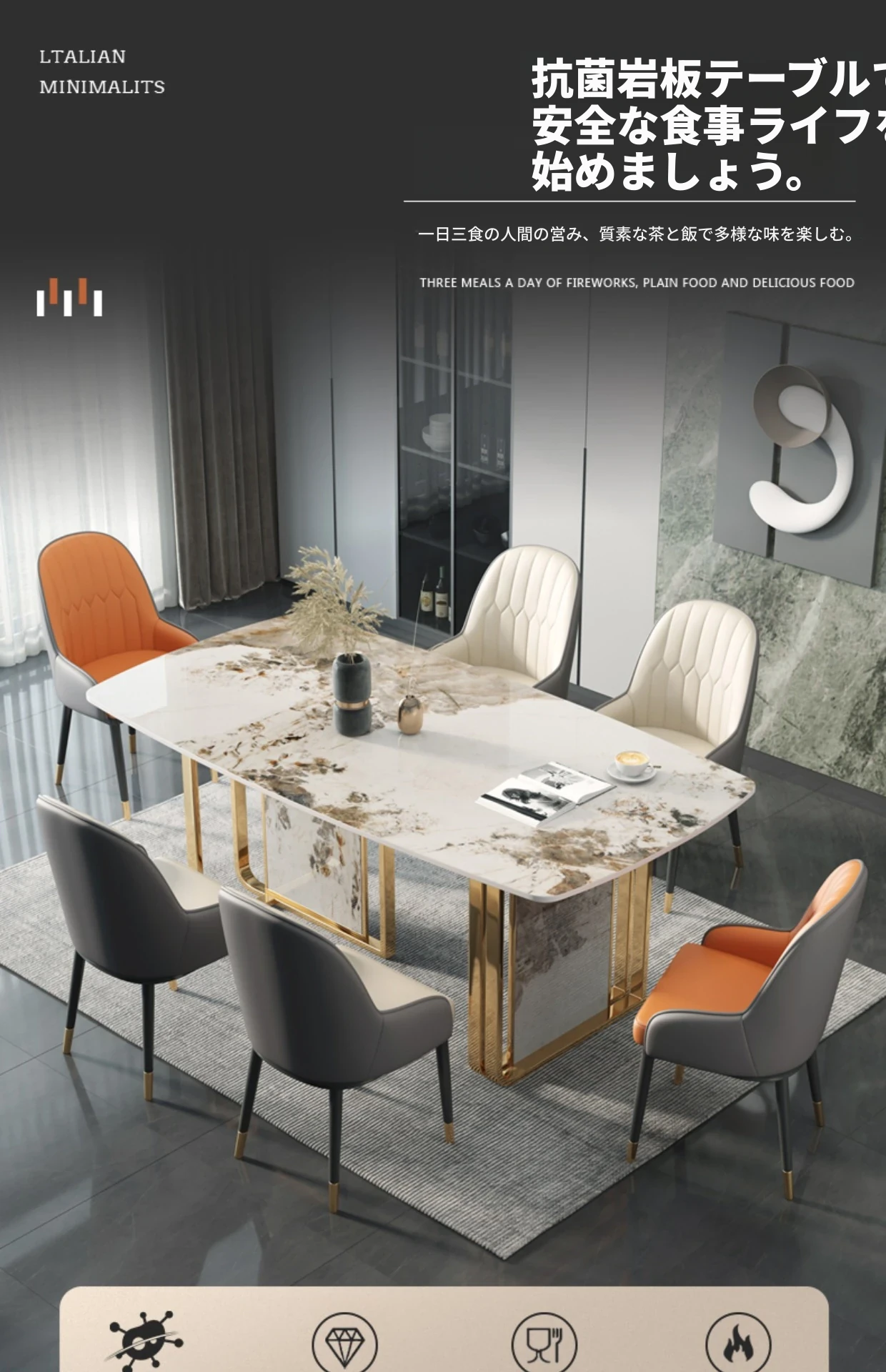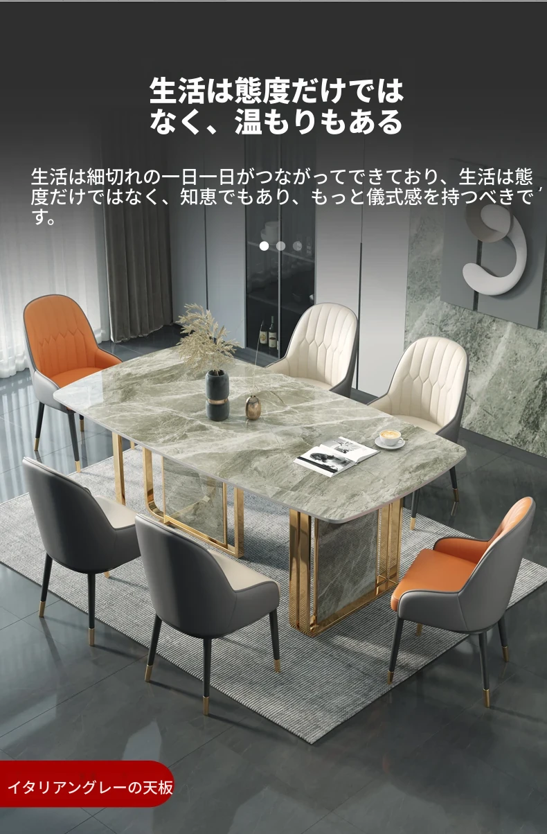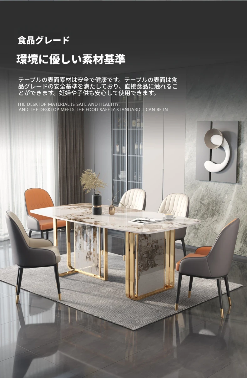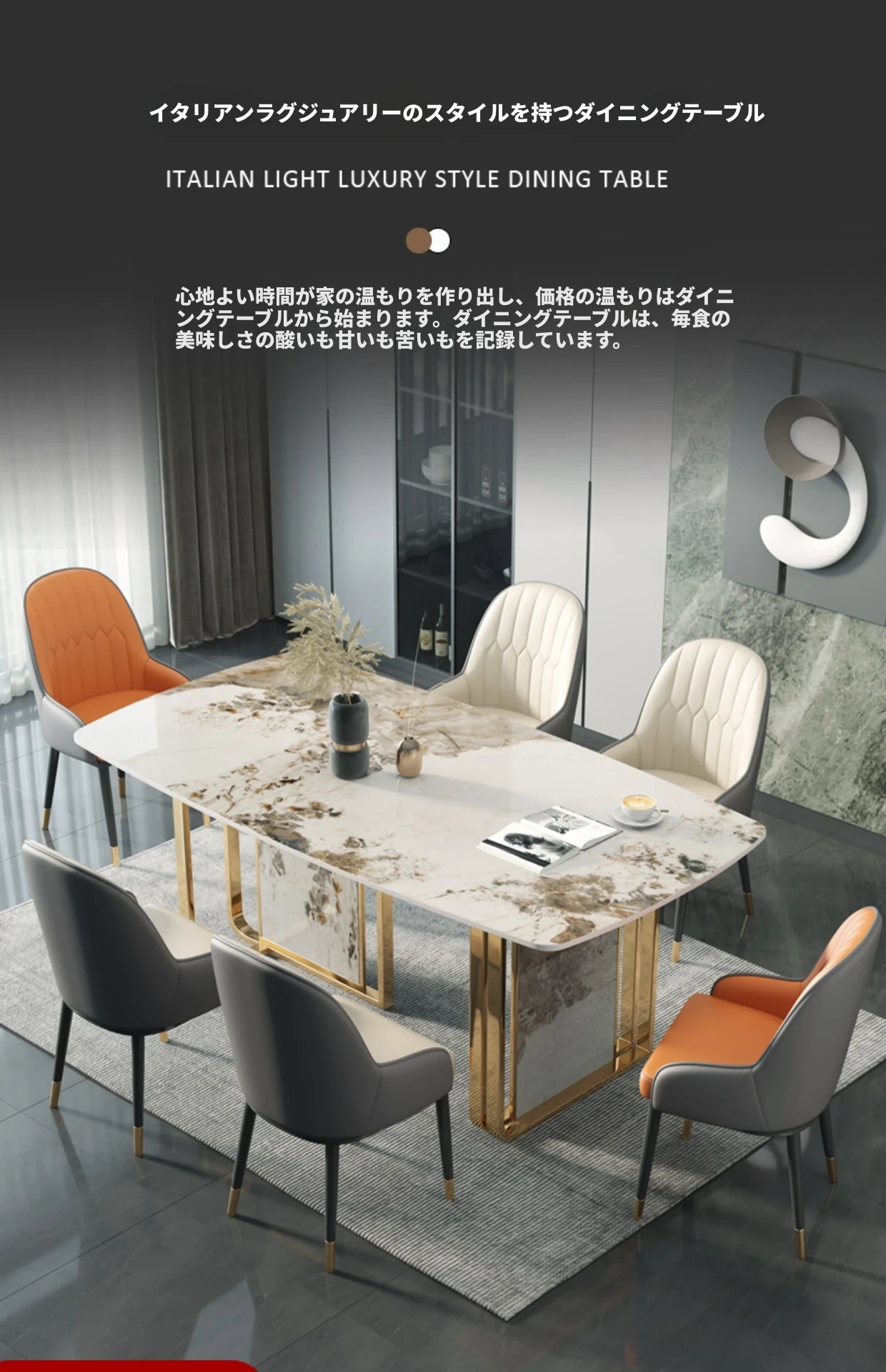 イタリアンラグジュアリー軽量ストーンテーブル|モダンシンプルな家用長方形デザイン|贅沢なメタルフレームと大理石模様が魅力的!