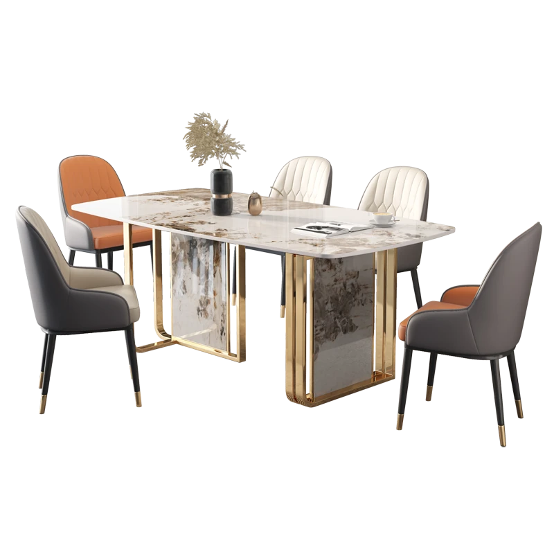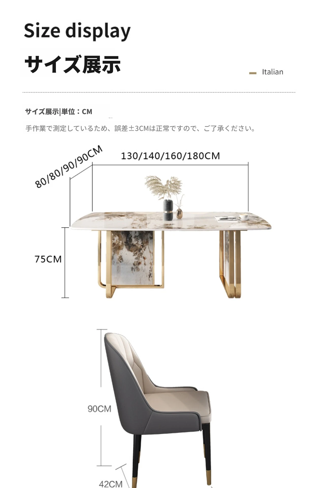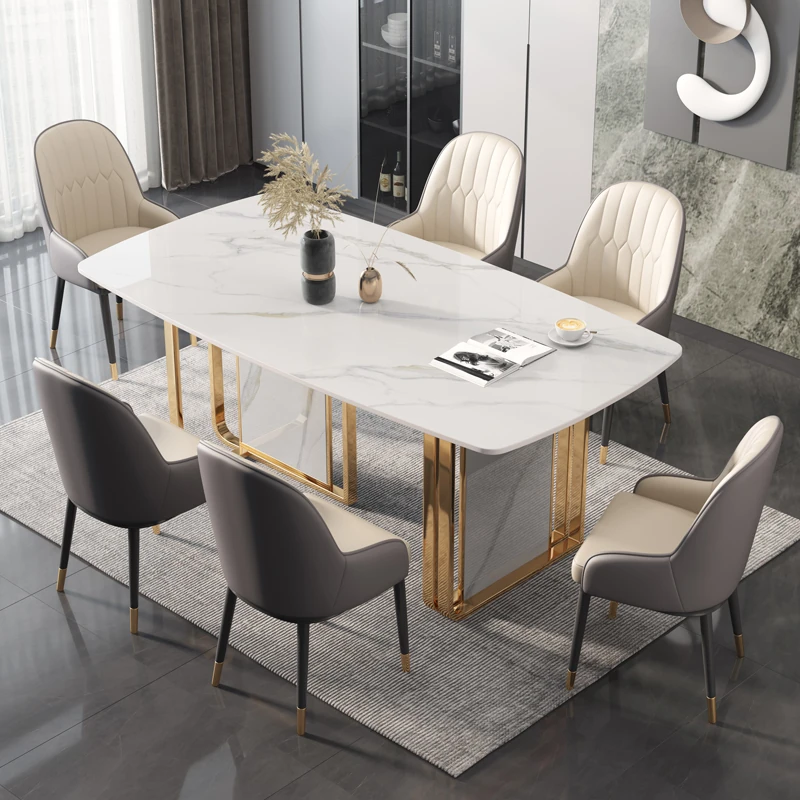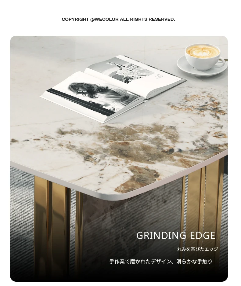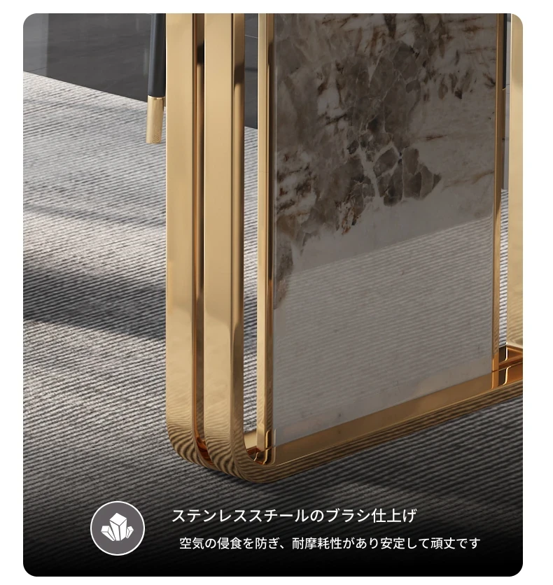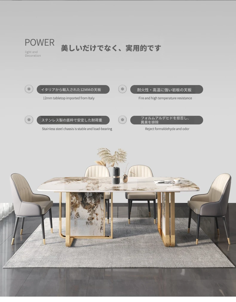 イタリアンラグジュアリー軽量ストーンテーブル|モダンシンプルな家用長方形デザイン|贅沢なメタルフレームと大理石模様が魅力的!