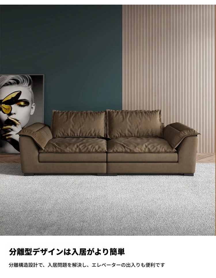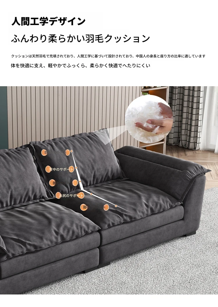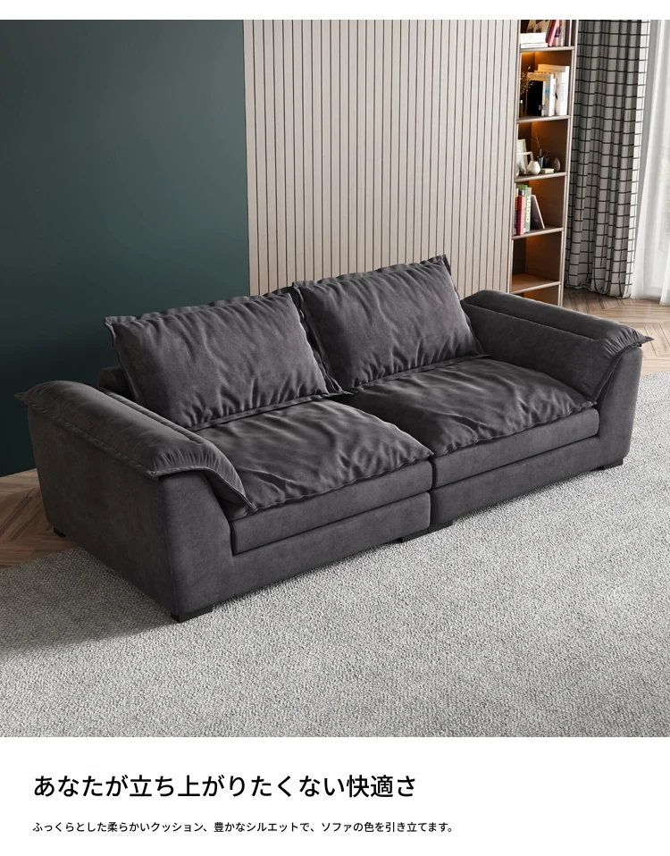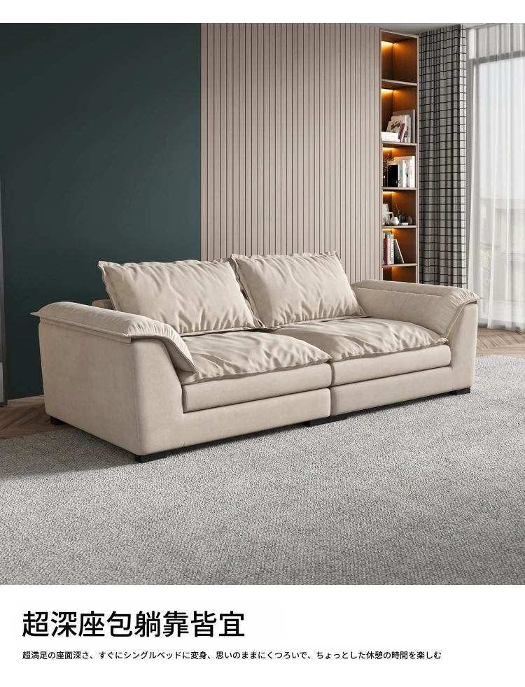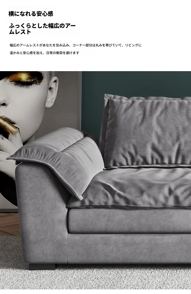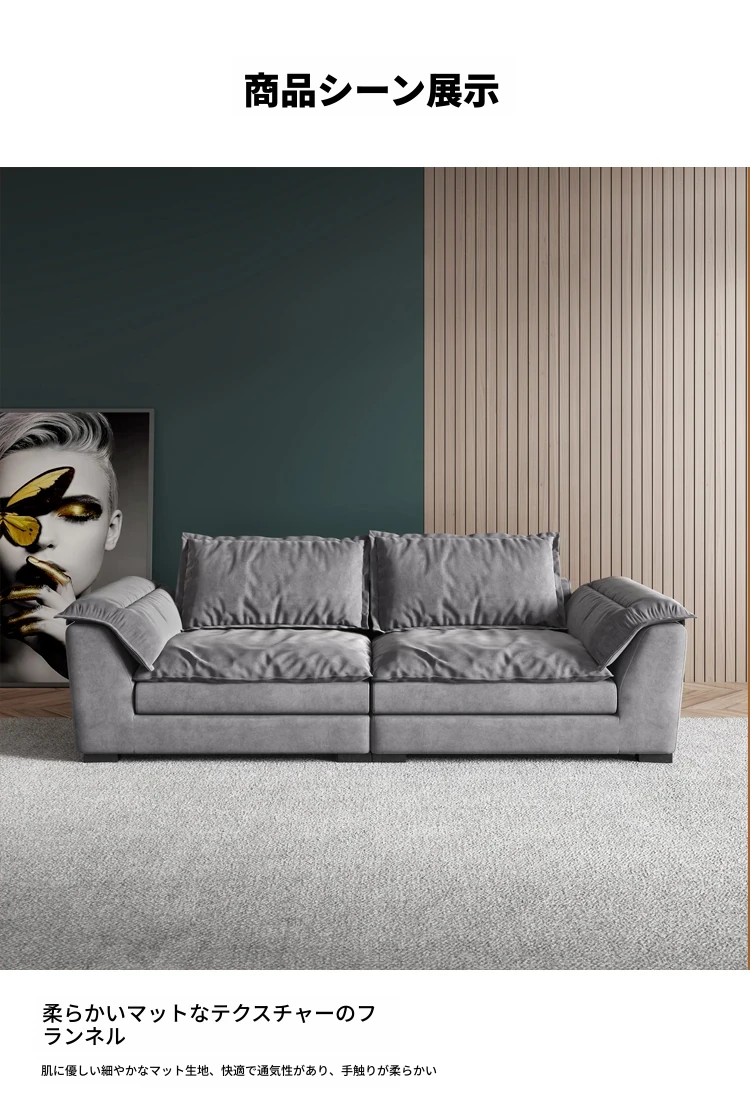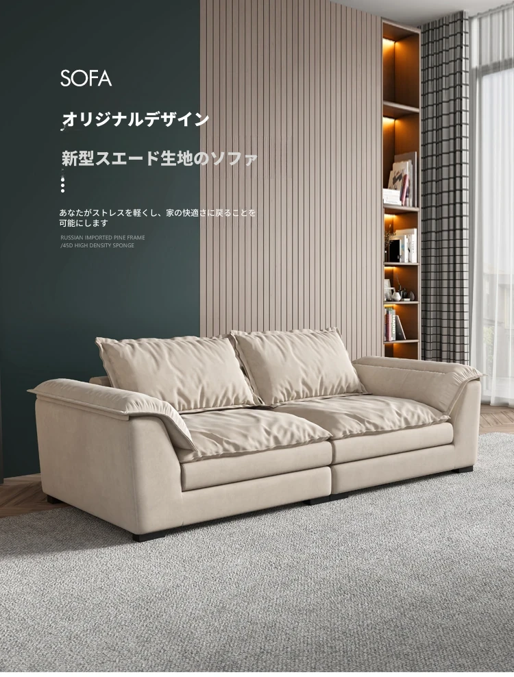 イタリアンミニマルダウンスエードテクスチャーソファ - モダンでシンプルなデザイン、リビングや小さな部屋にぴったり!ネットで人気のストレートソファで、快適な座り心地を実現。