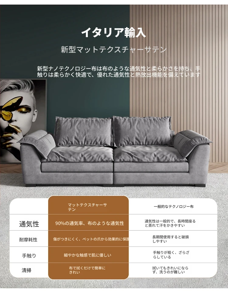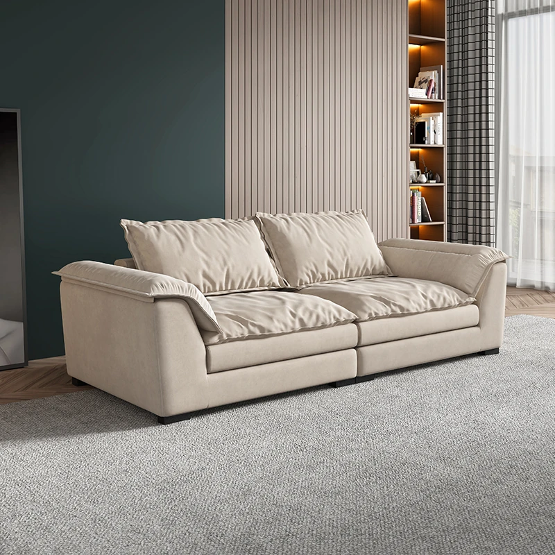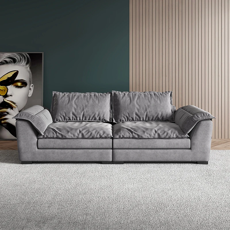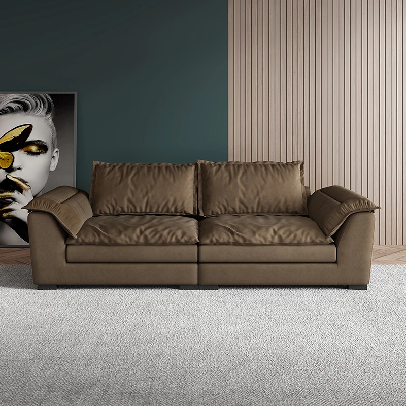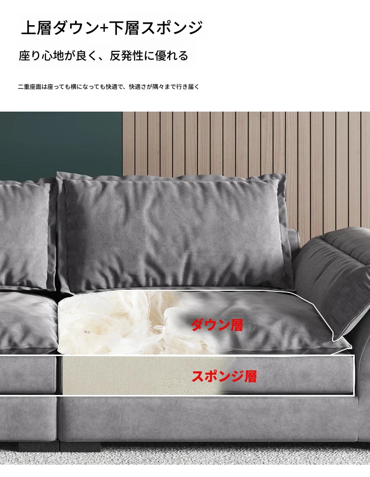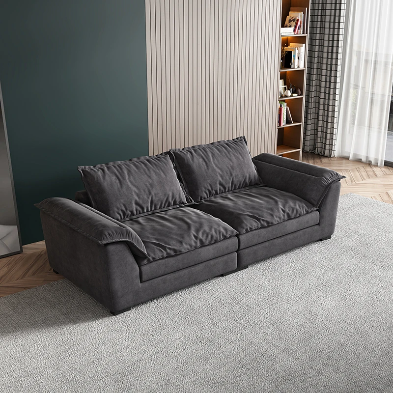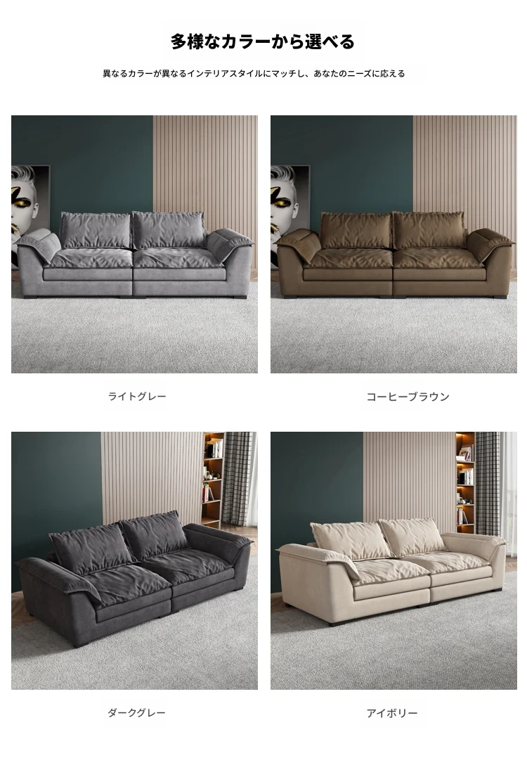 イタリアンミニマルダウンスエードテクスチャーソファ - モダンでシンプルなデザイン、リビングや小さな部屋にぴったり!ネットで人気のストレートソファで、快適な座り心地を実現。
