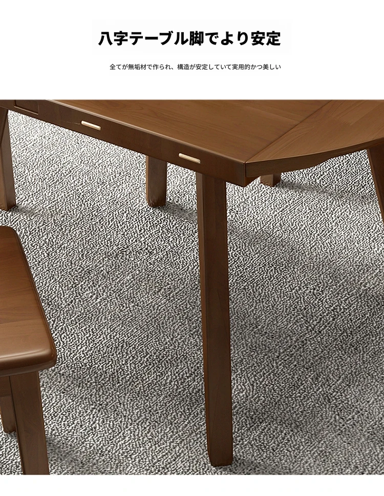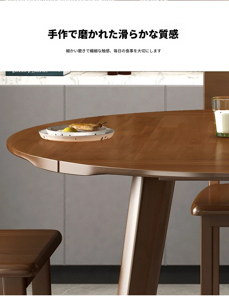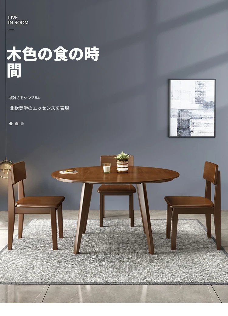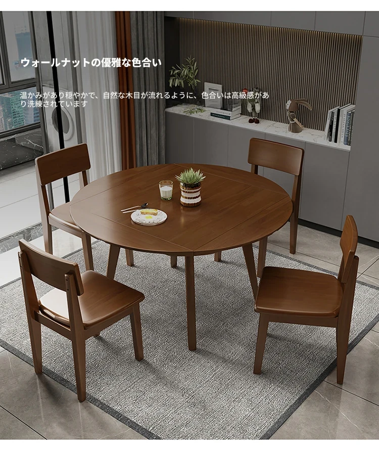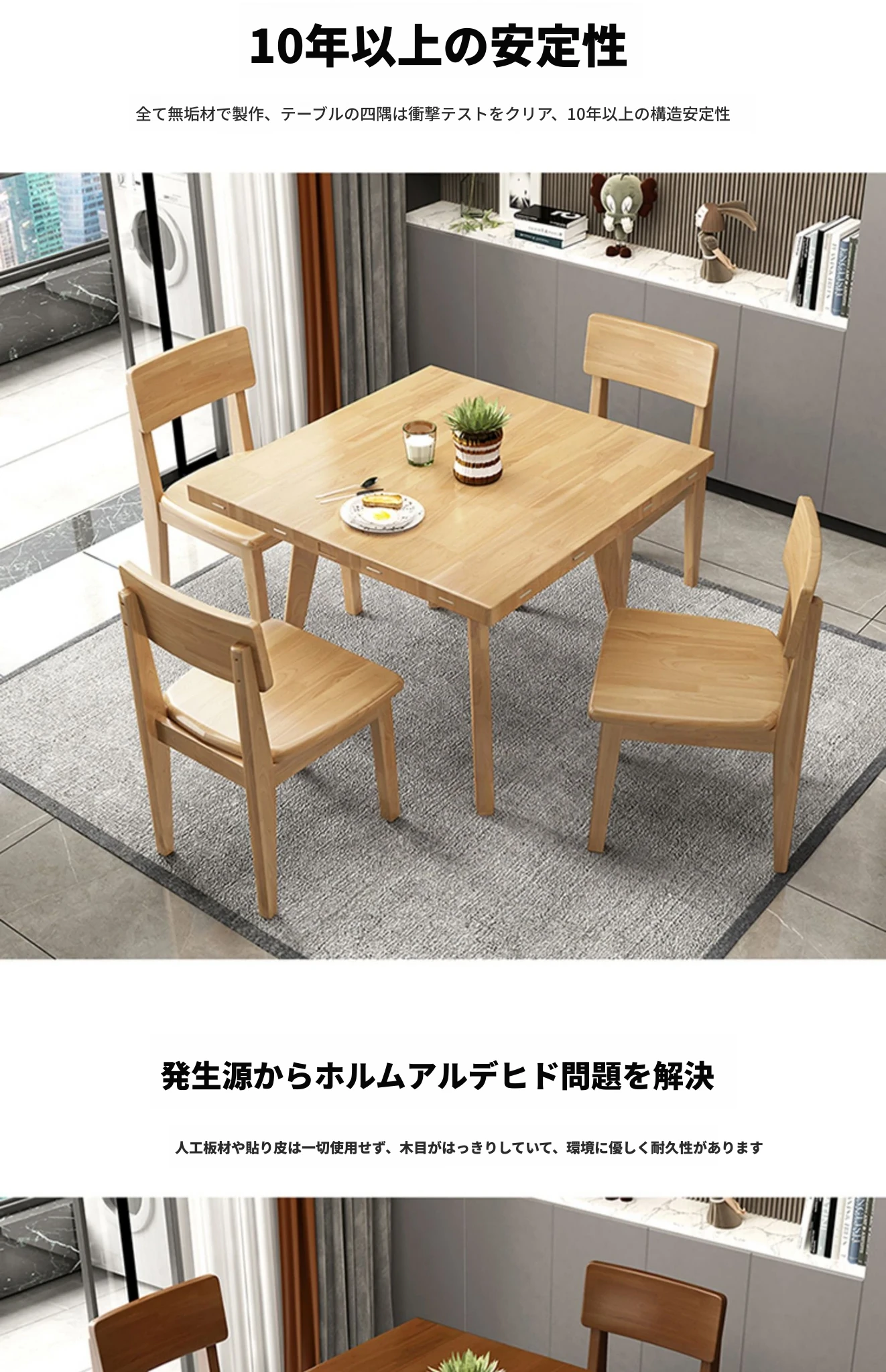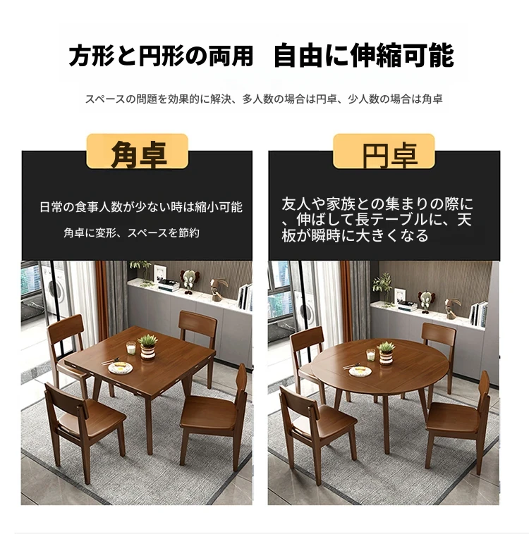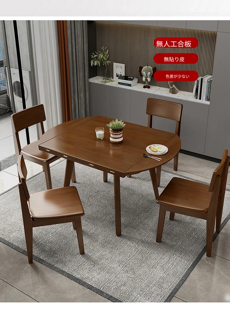 全実木折りたたみダイニングテーブル&チェアセット - モダンシンプルデザイン、小スペース向け、伸縮可能な食卓、四角と丸の2wayスタイルで家族団らんを楽しもう!