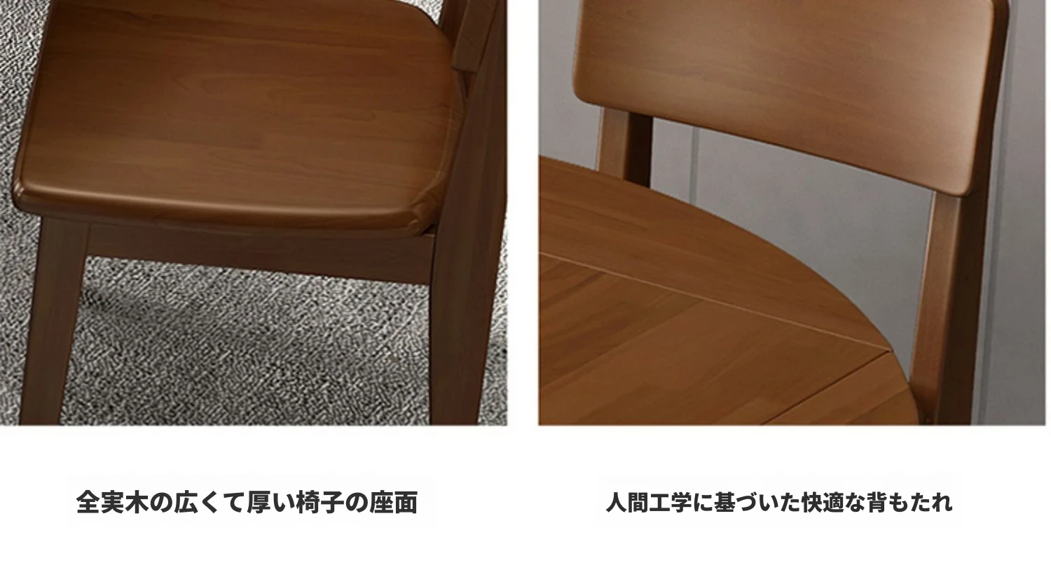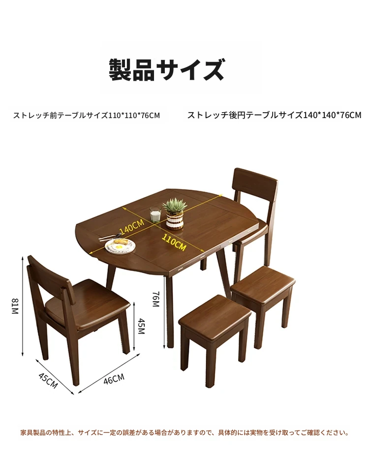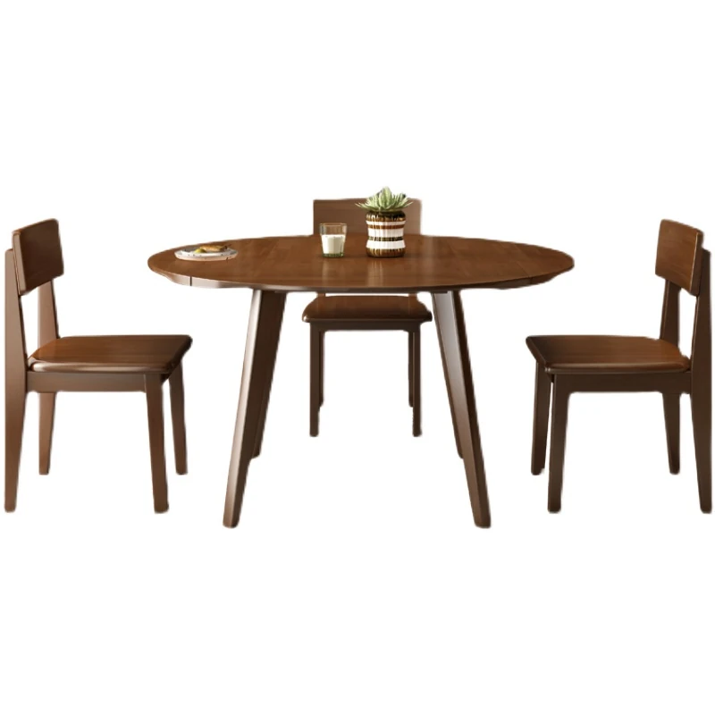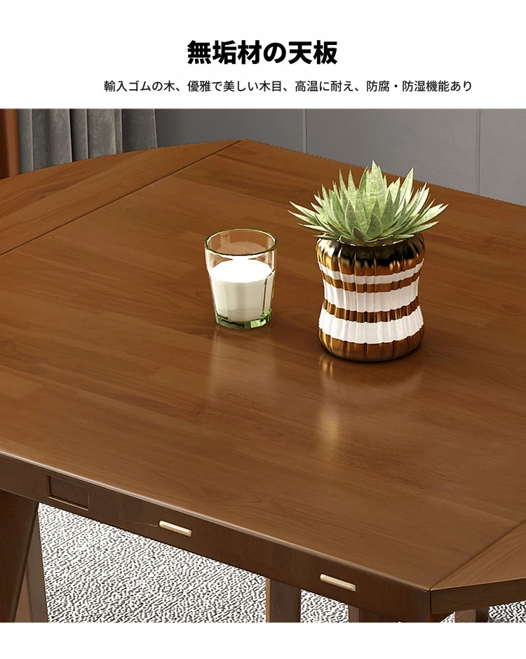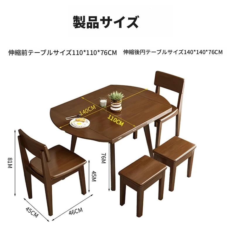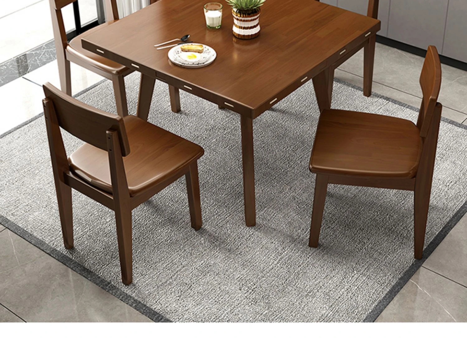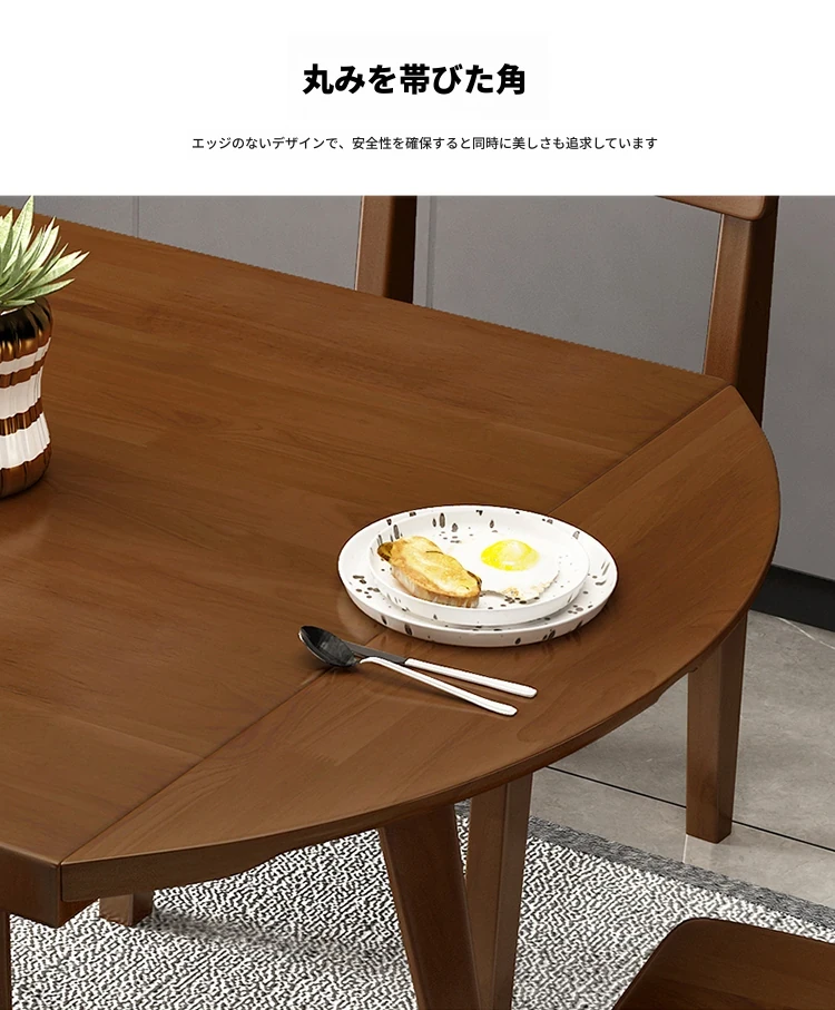 全実木折りたたみダイニングテーブル&チェアセット - モダンシンプルデザイン、小スペース向け、伸縮可能な食卓、四角と丸の2wayスタイルで家族団らんを楽しもう!