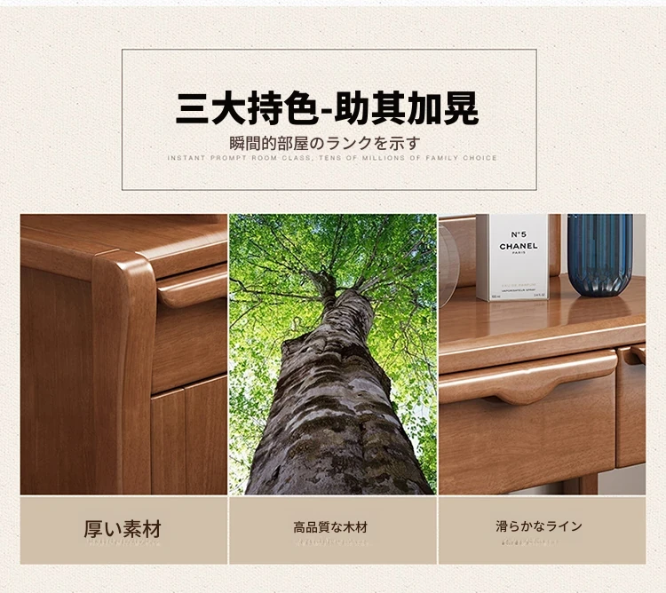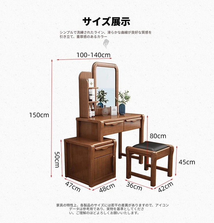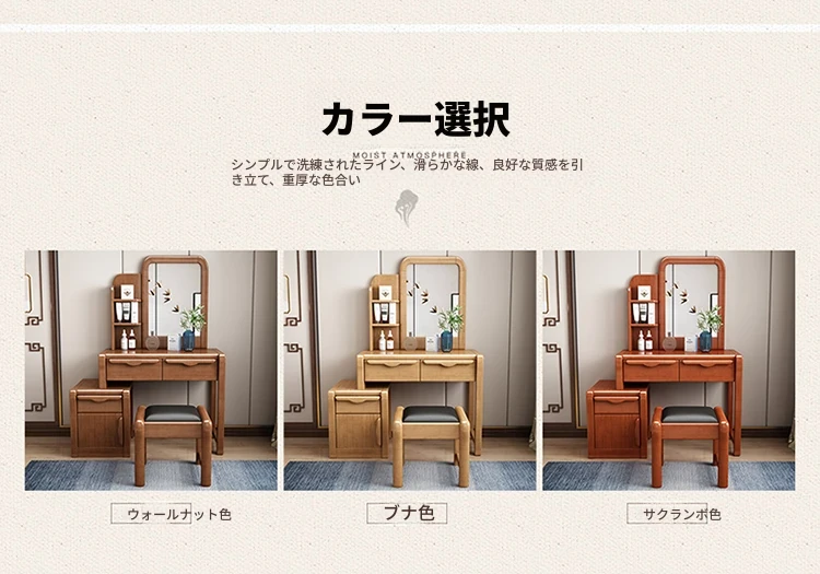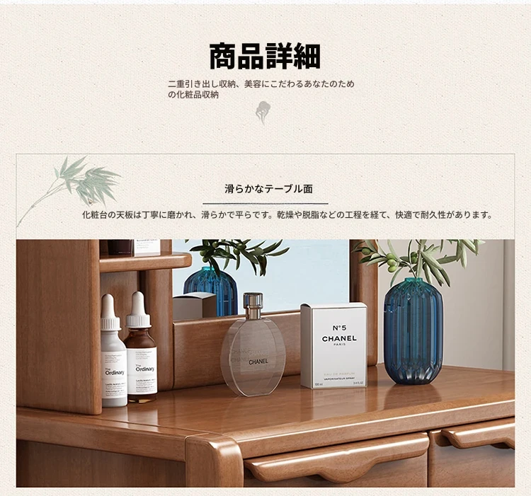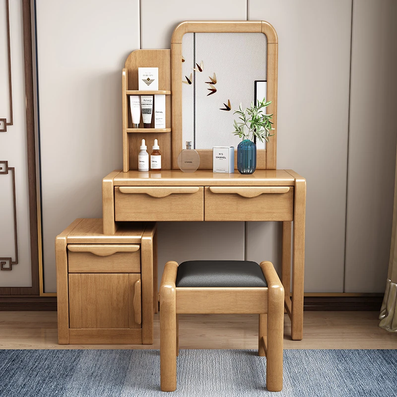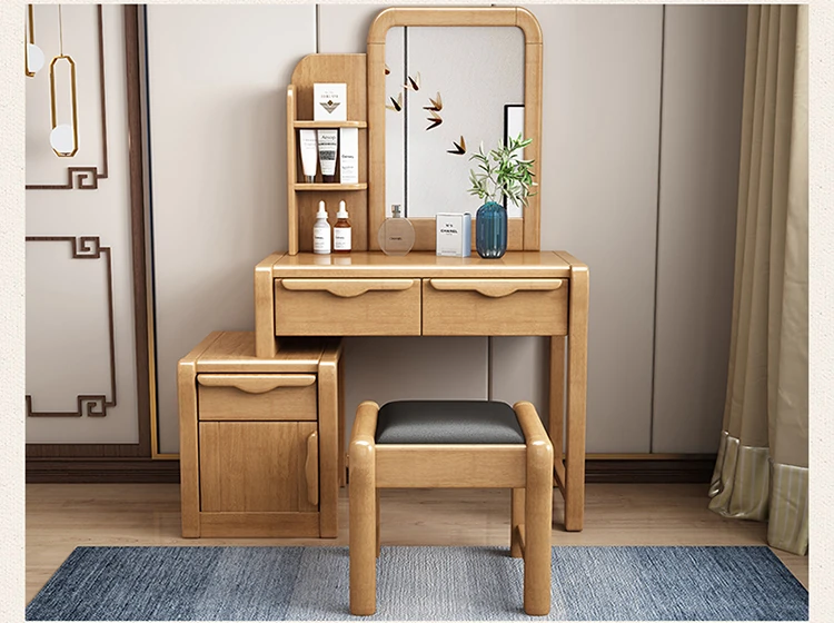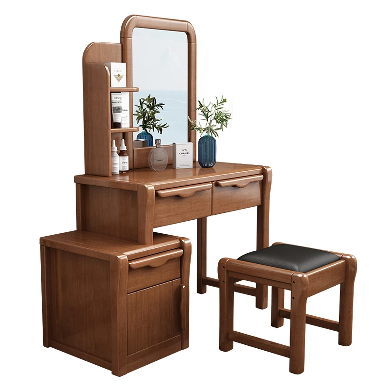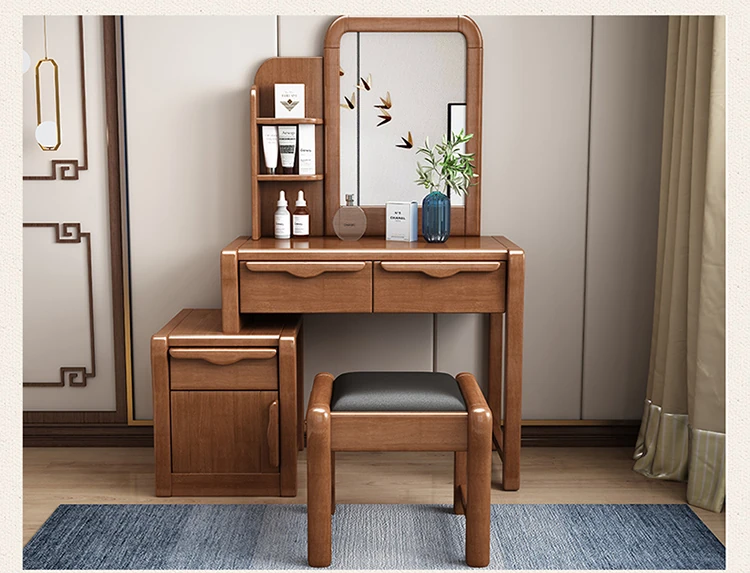 現代中式実木化粧台|寝室用&家庭用|ミラー一体型|収納キャビネット付き|移動可能で多機能!あなたの美を引き立てる完璧なアイテム!