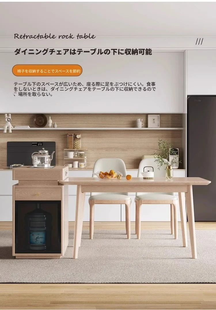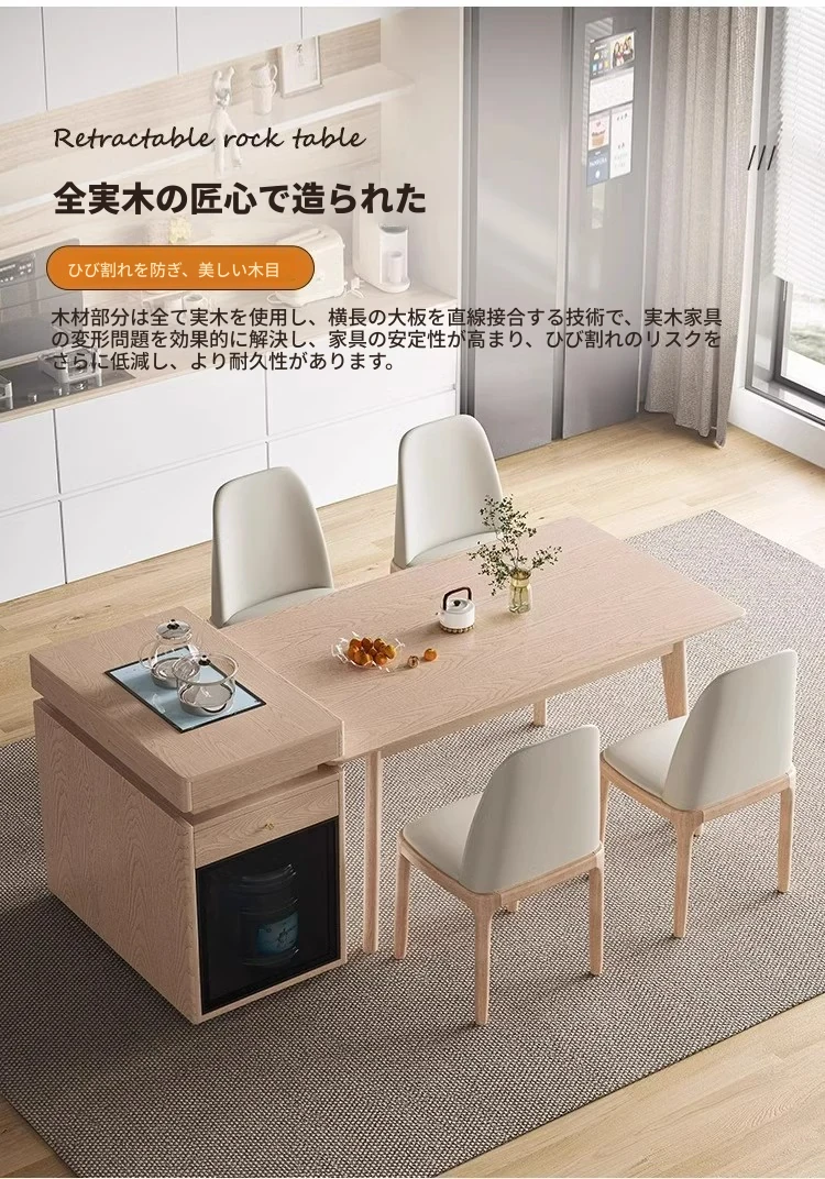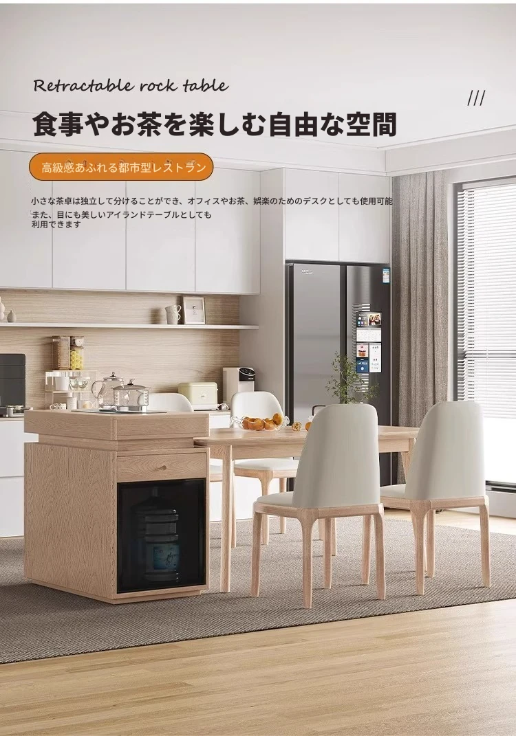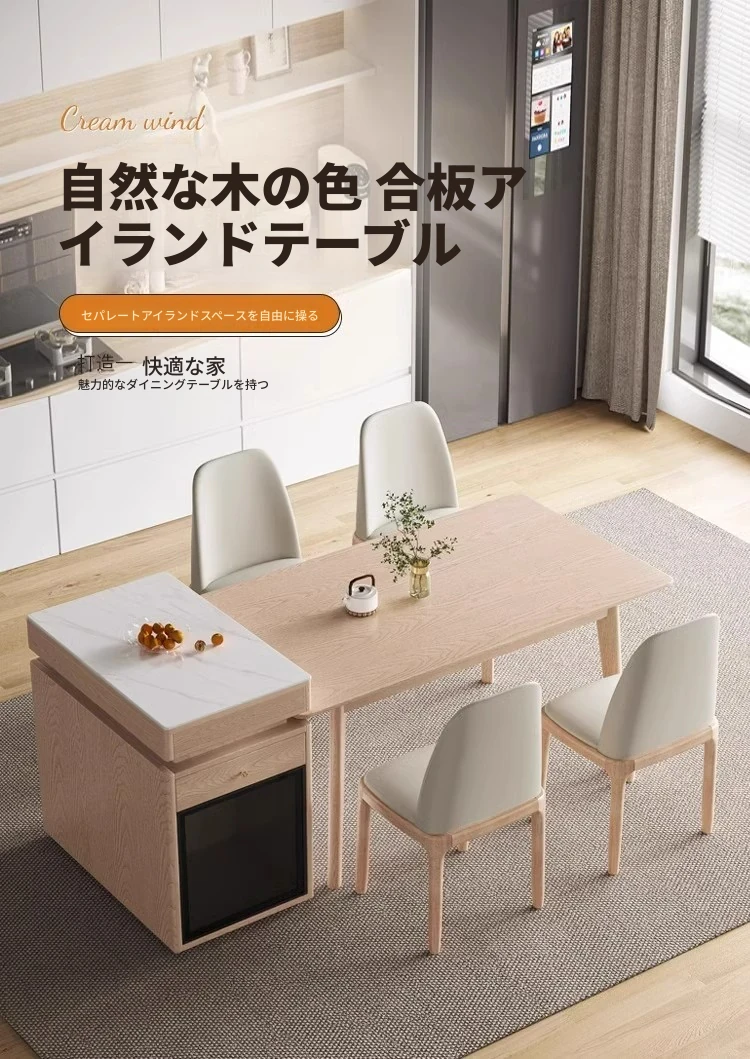 1.4メートルアイランドテーブル+ダイニングテーブル+4脚の椅子(レール付き電源タップ)