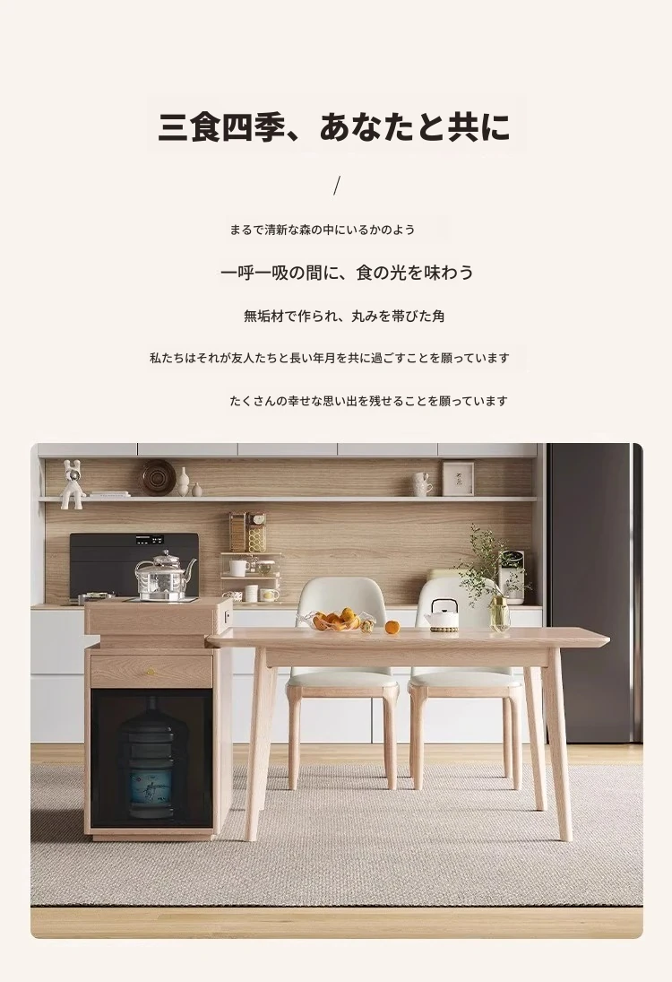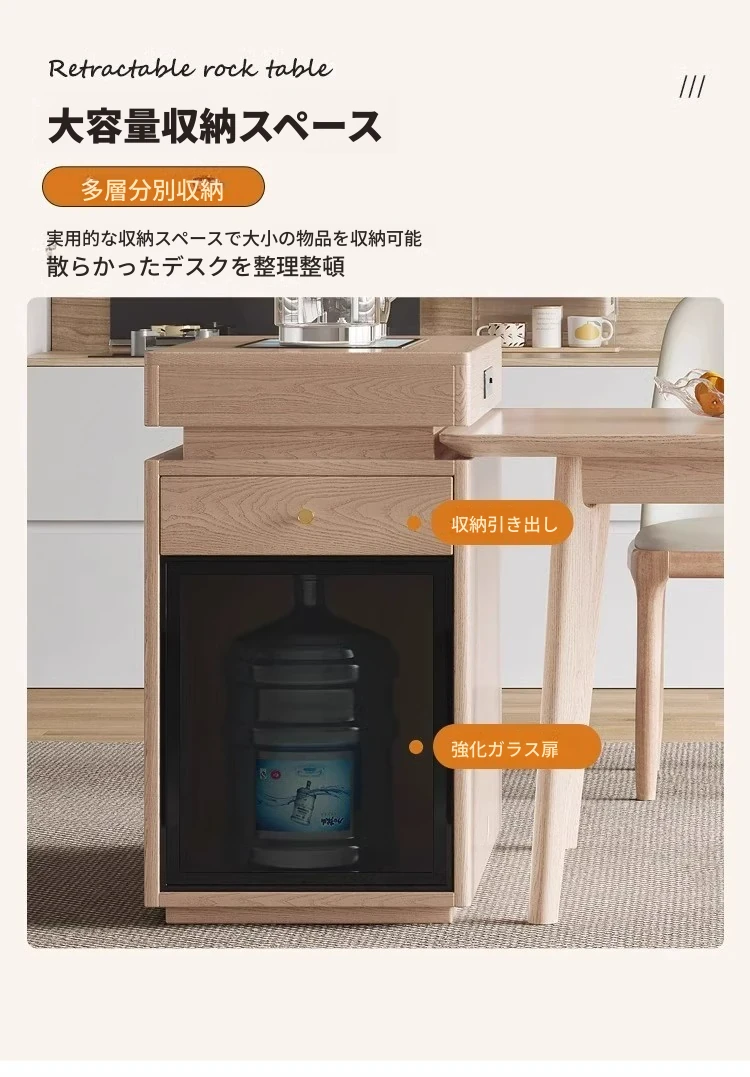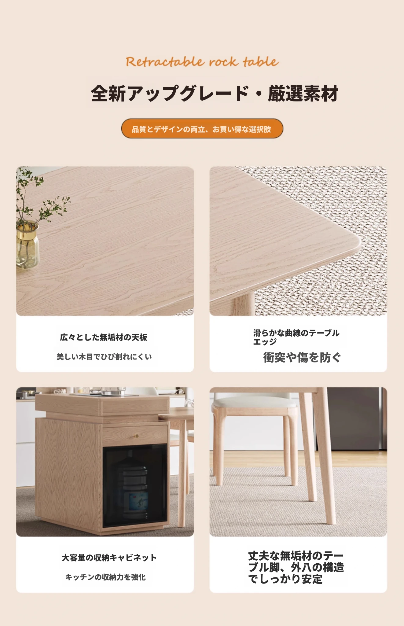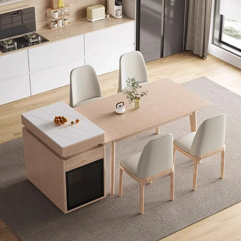 1.4メートルアイランドテーブル+ダイニングテーブル+4脚の椅子(レール付き電源タップ)