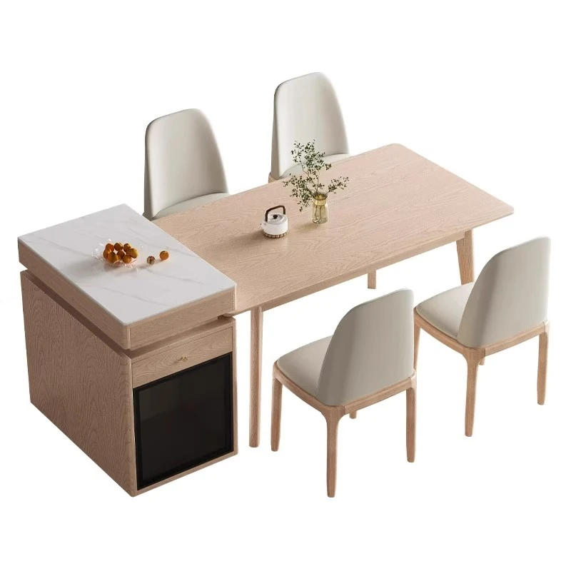 1.6メートルアイランドテーブル+ダイニングテーブル+4脚の椅子(レール付き電源タップ)