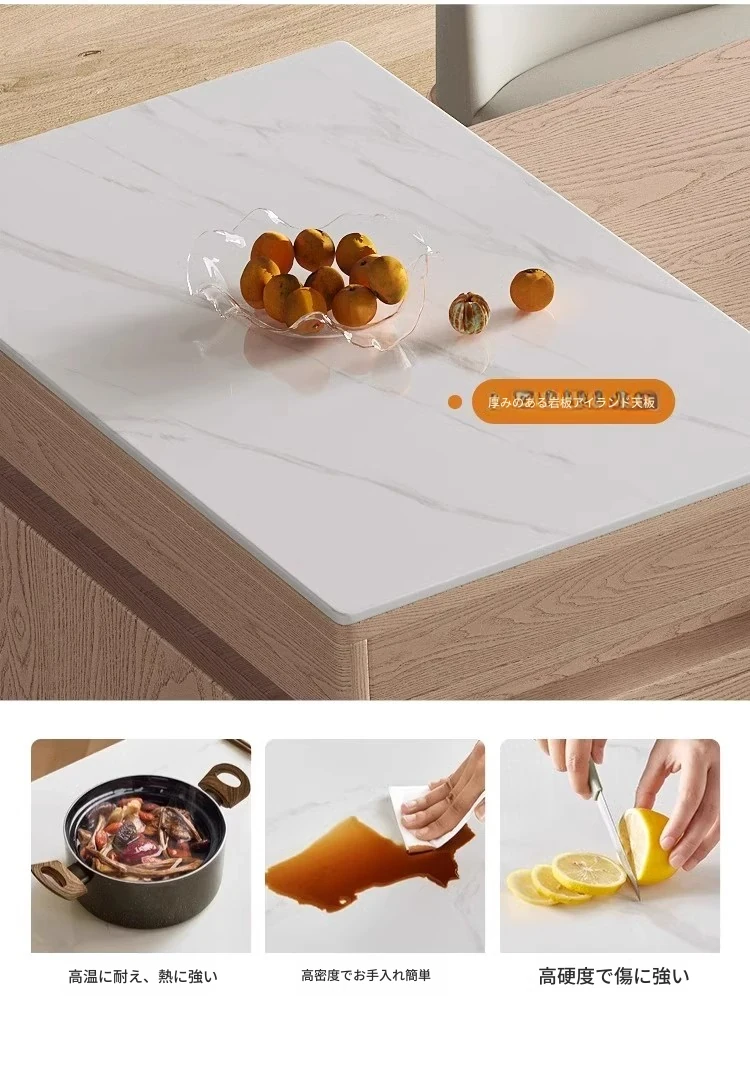 1.6メートルアイランドテーブル+ダイニングテーブル+6脚の椅子(電源タップ付き)