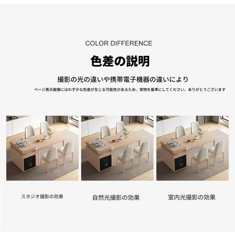 1.4メートルアイランドテーブル+ダイニングテーブル+4脚の椅子(電源タップ付き)