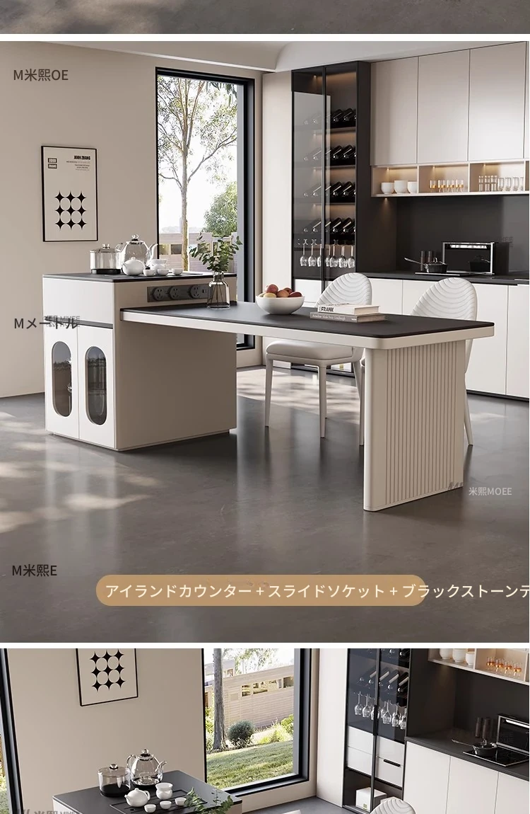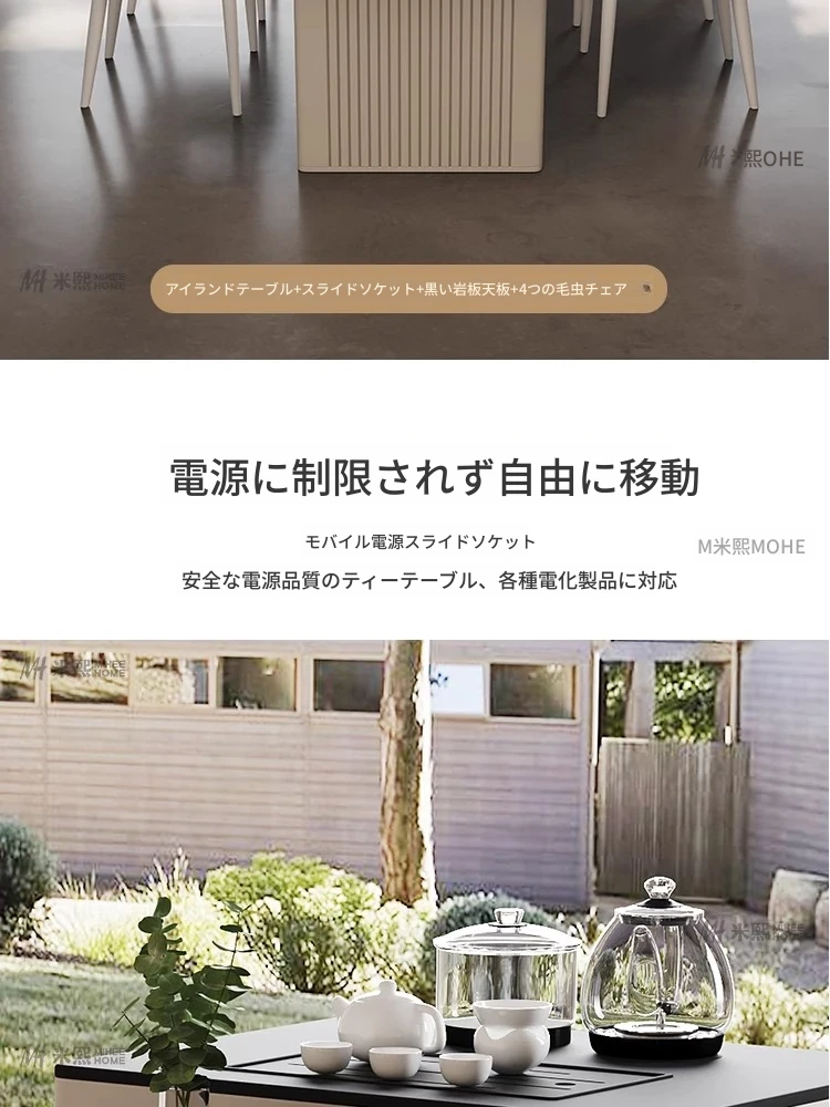 CT14アイランドテーブル+毛虫チェア*4(牛排用電源タップ+二口茶炉)