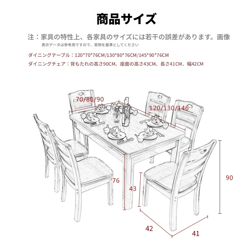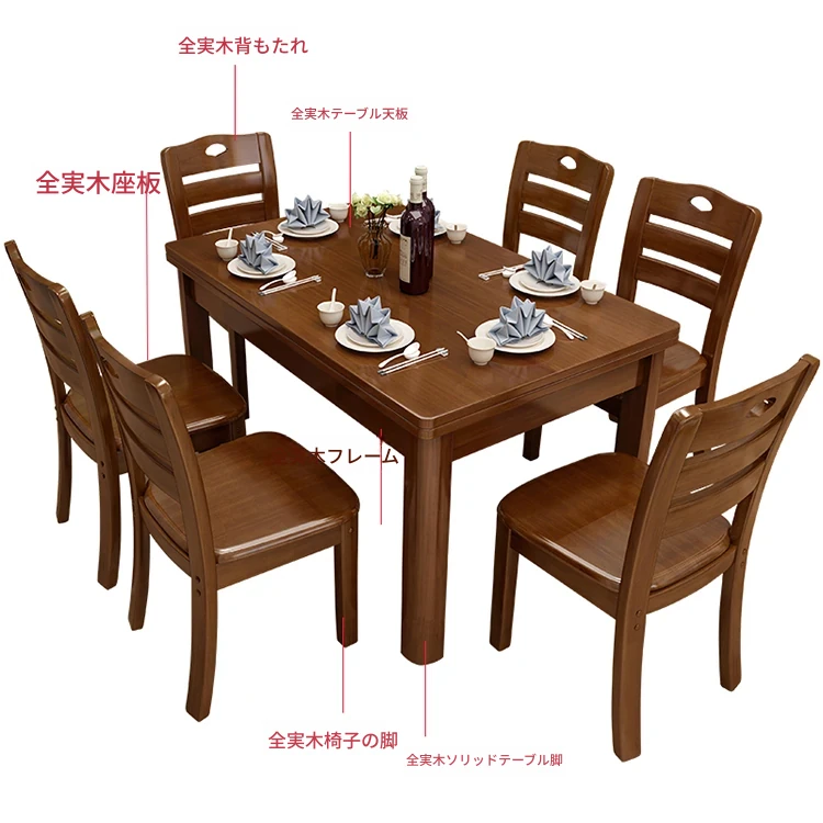 1.2メートル全実木1テーブル6椅子【自分で組み立て】