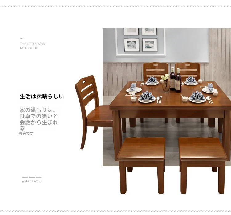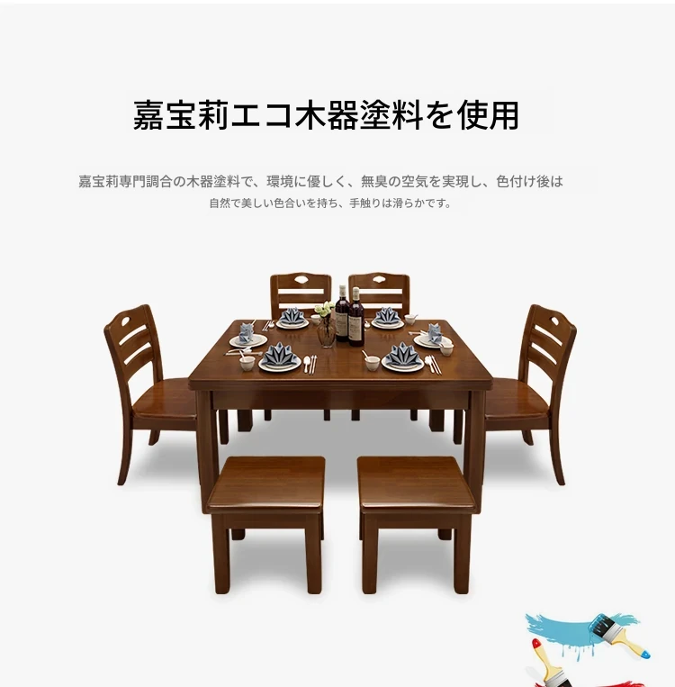 1.3メートル全実木1テーブル4椅子2スツール【自分で組み立て】