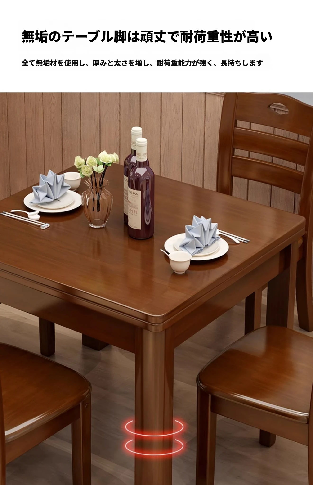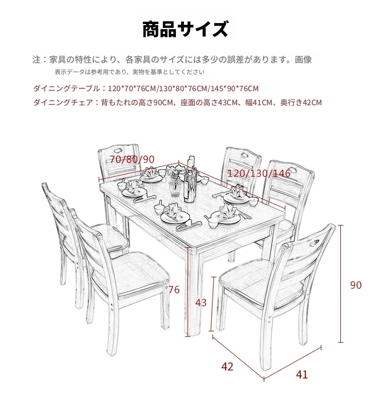 1.2メートル全実木1テーブル6椅子【設置込み】