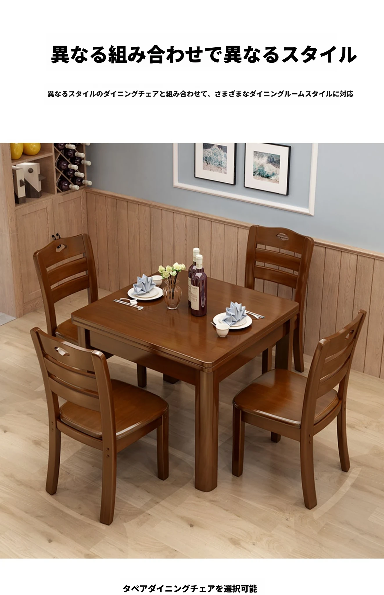1.3メートル全実木1テーブル4椅子【自分で組み立て】