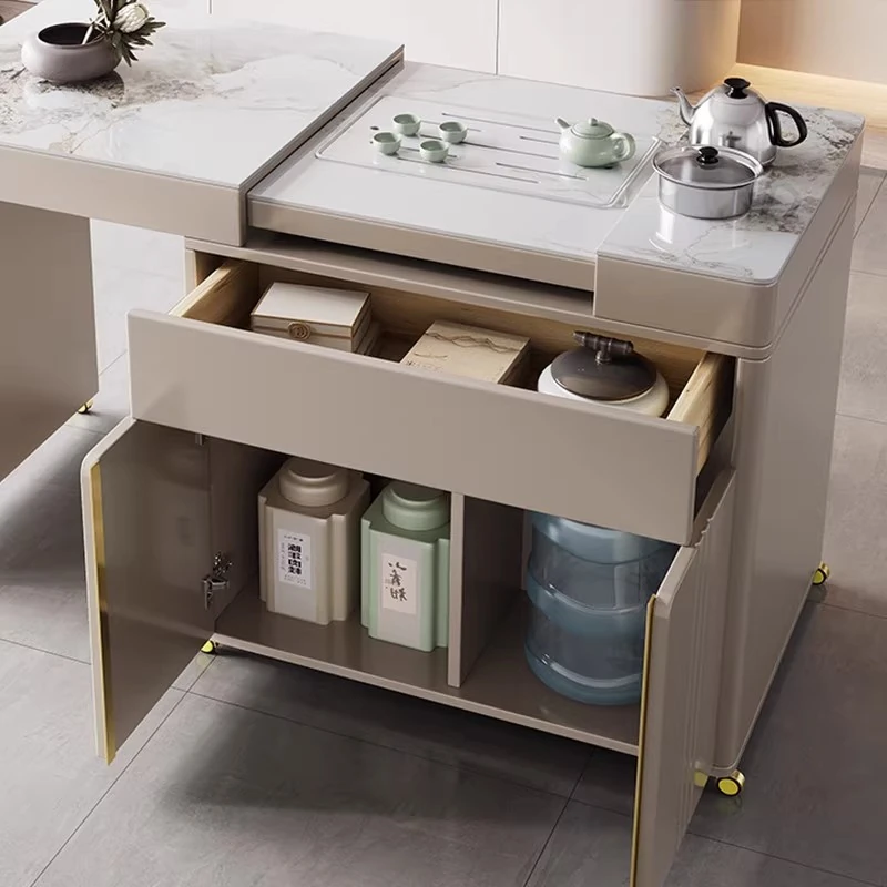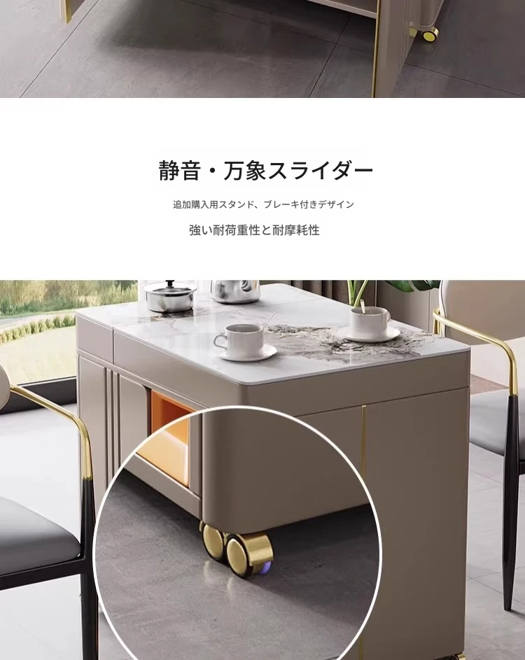 CT04収納茶台+ラグジュアリー椅子*3(ダブルホールガラスポット茶炉付き)