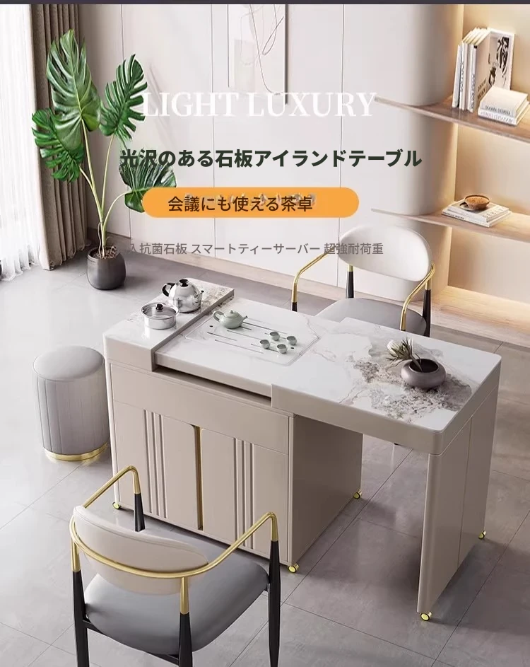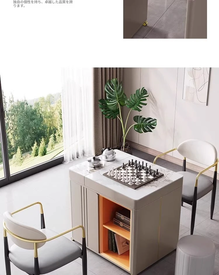 CT04収納茶台+ラグジュアリー椅子*1(ダブルホールガラスポット茶炉付き)