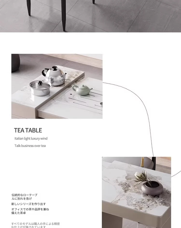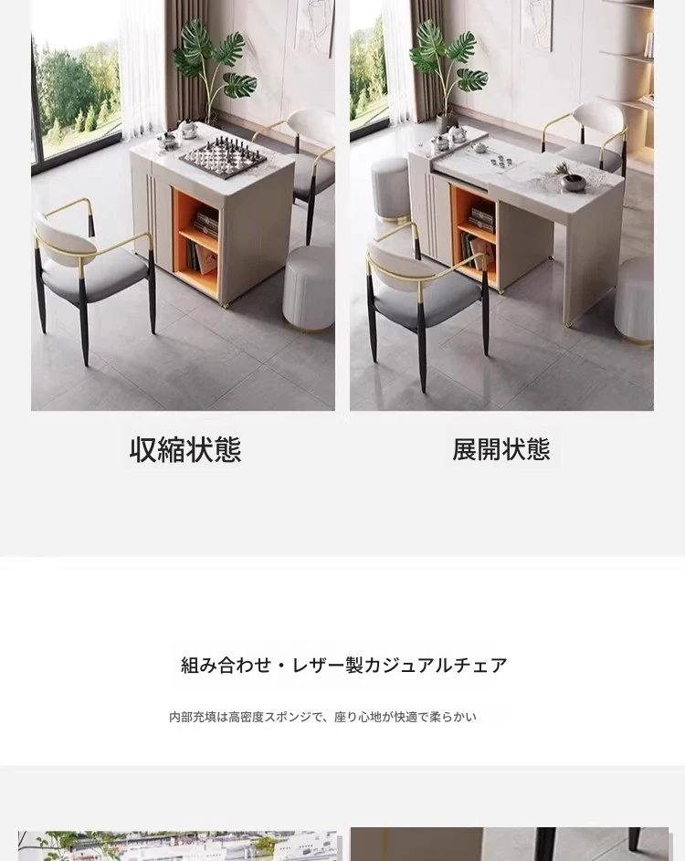 CT04収納茶台+ラグジュアリー椅子*3+丸椅子*4(ダブルホールガラスポット茶炉付き)