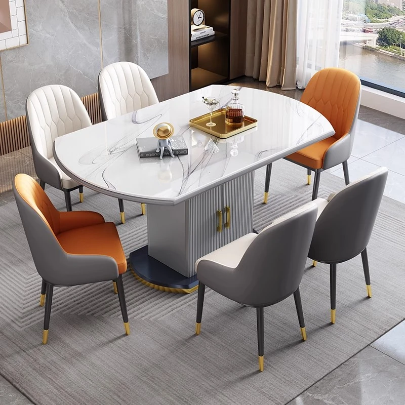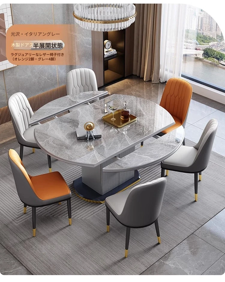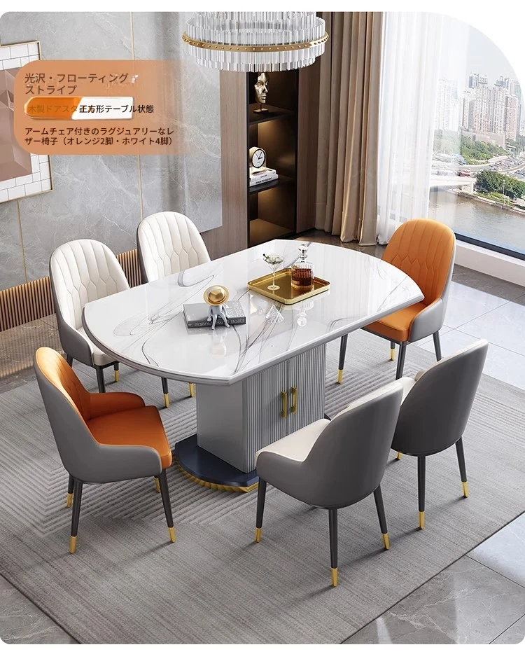 岩板ダイニングテーブル【木製扉キャビネット】+6皮製椅子