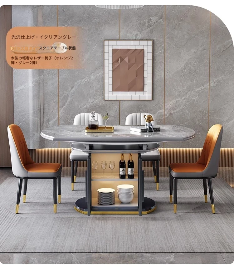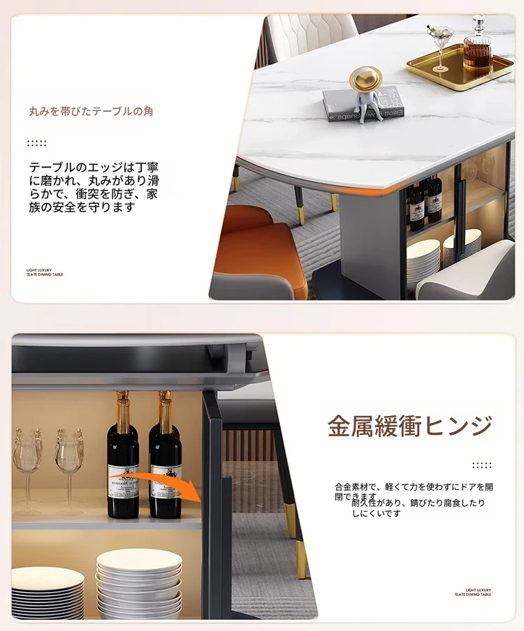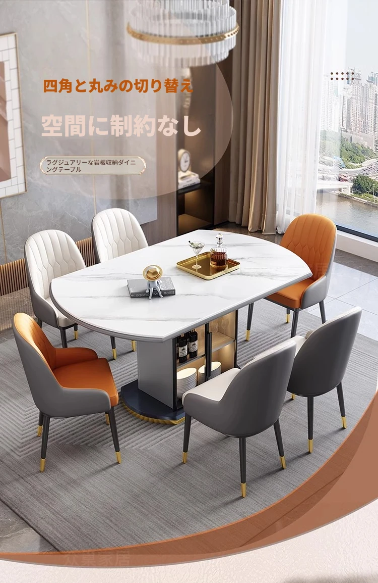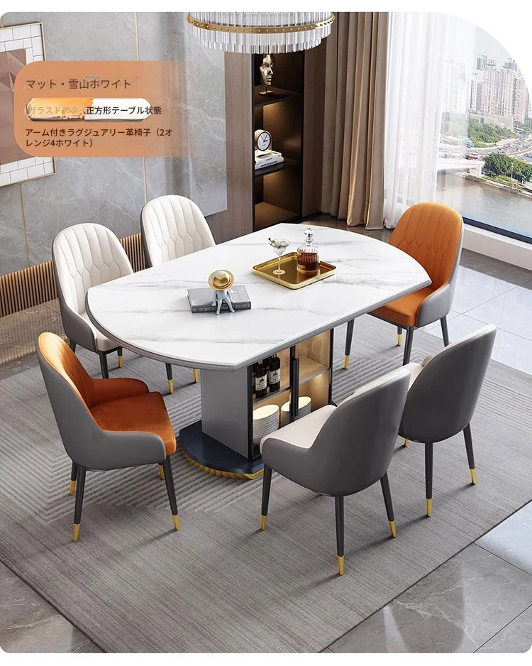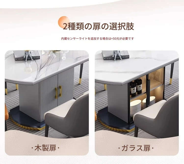 岩板ダイニングテーブル【木製扉キャビネット】+8皮製椅子