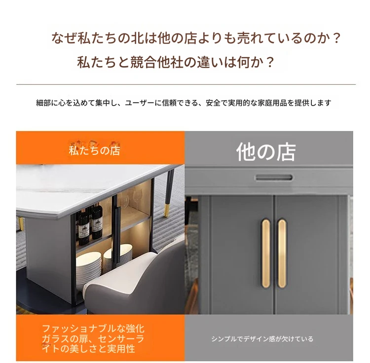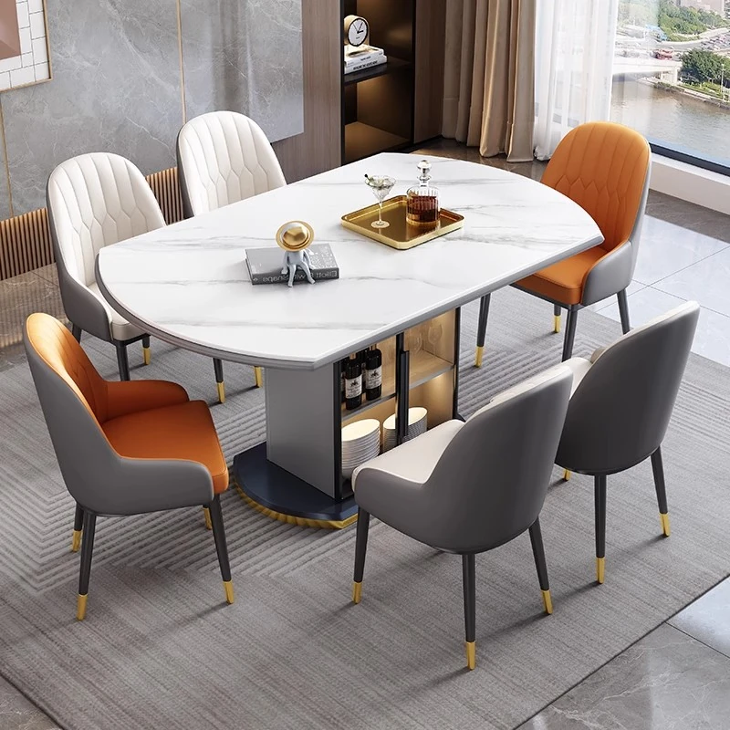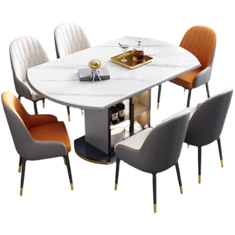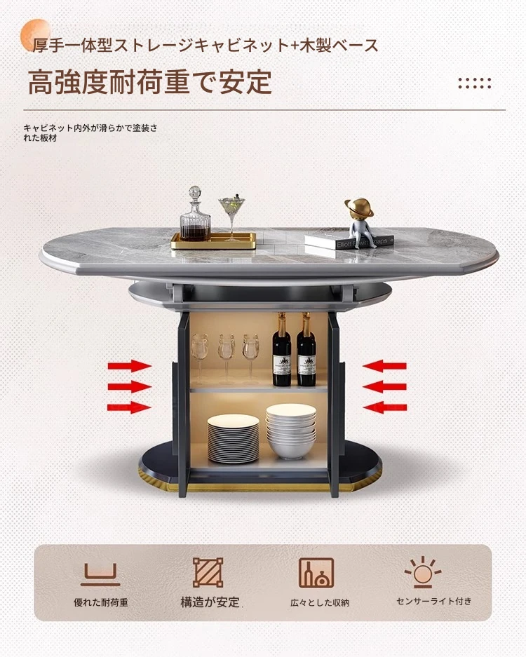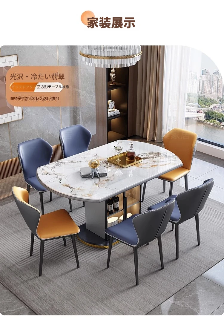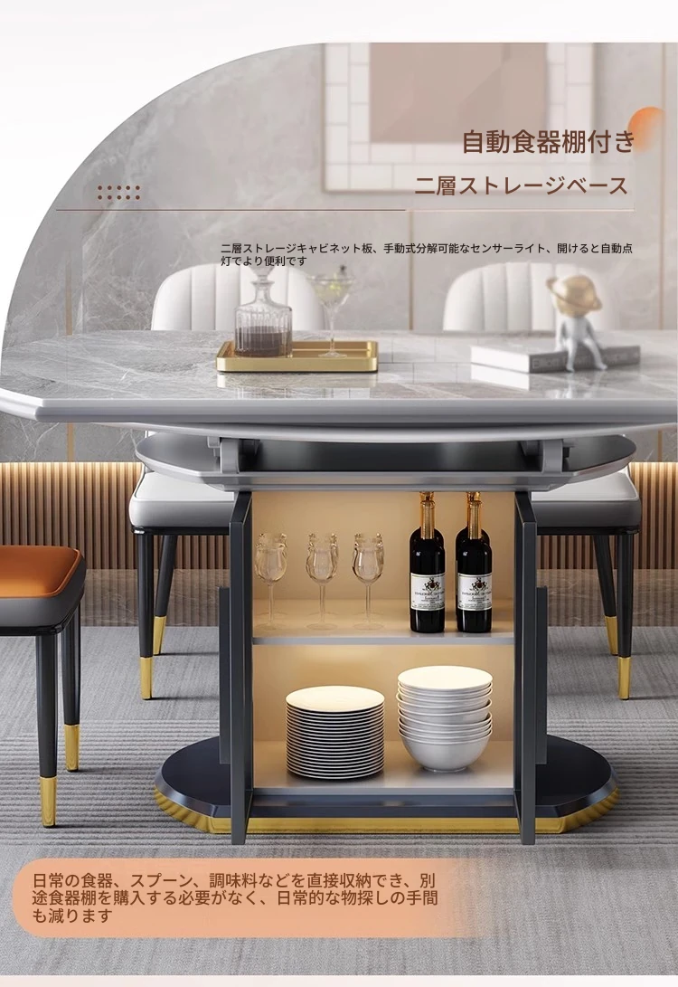 岩板ダイニングテーブル【木製扉キャビネット】+8皮製椅子