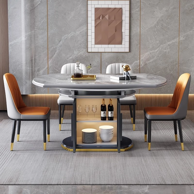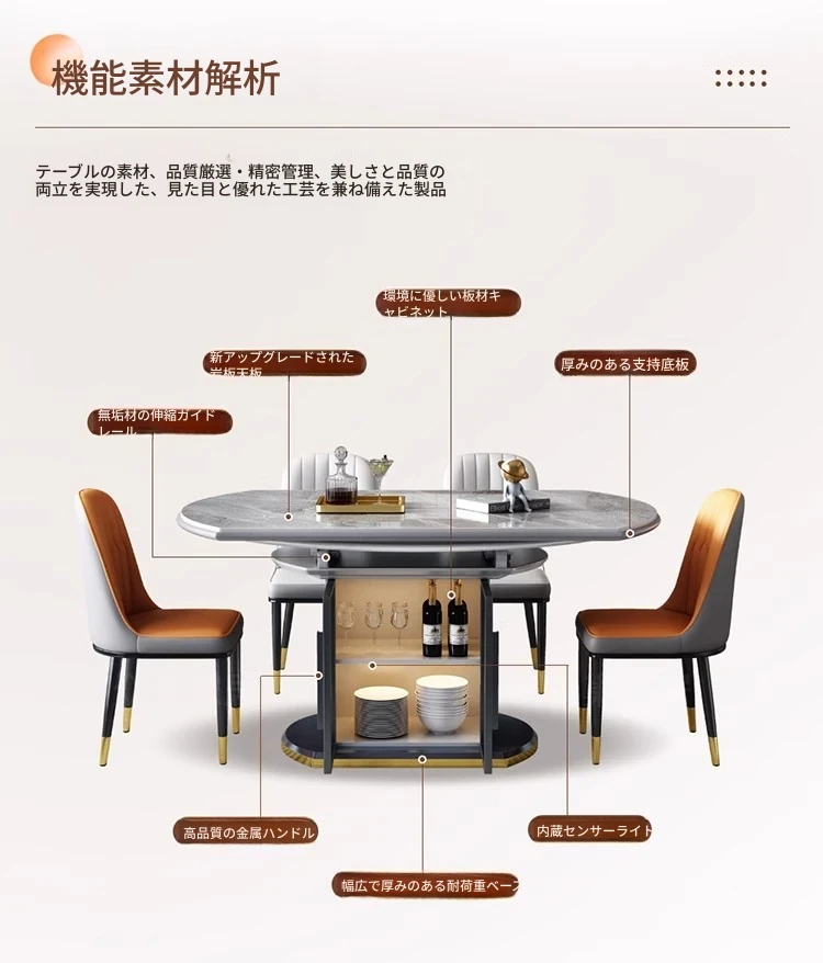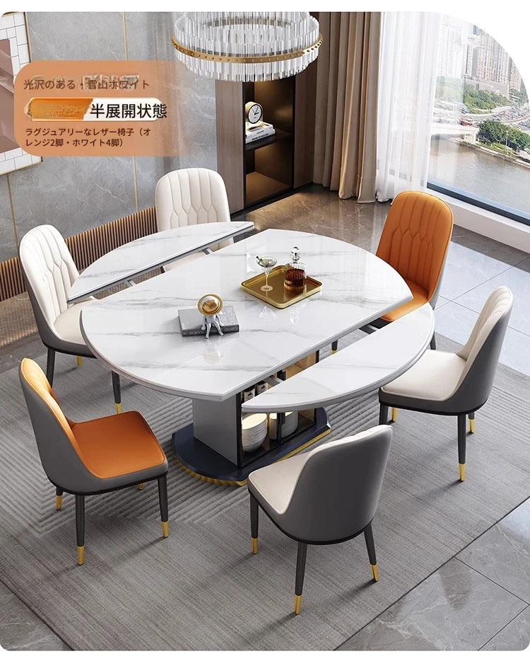 岩板ダイニングテーブル【ガラスキャビネット】+8皮製椅子