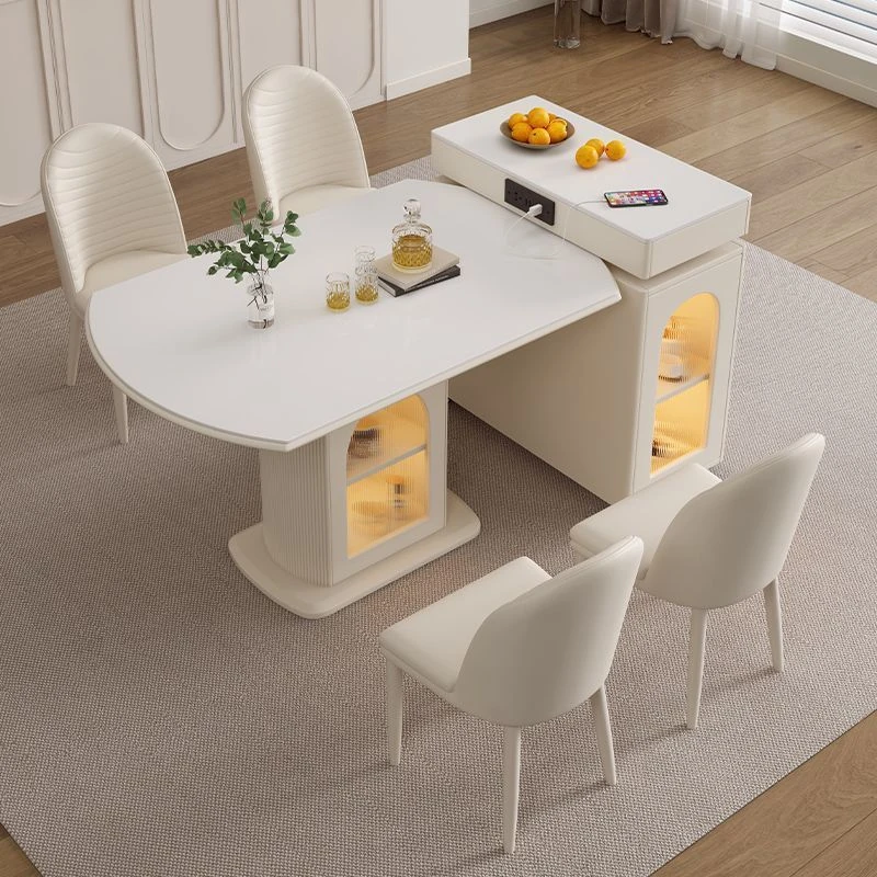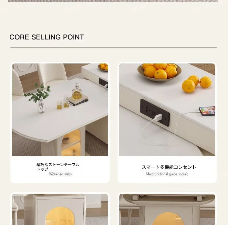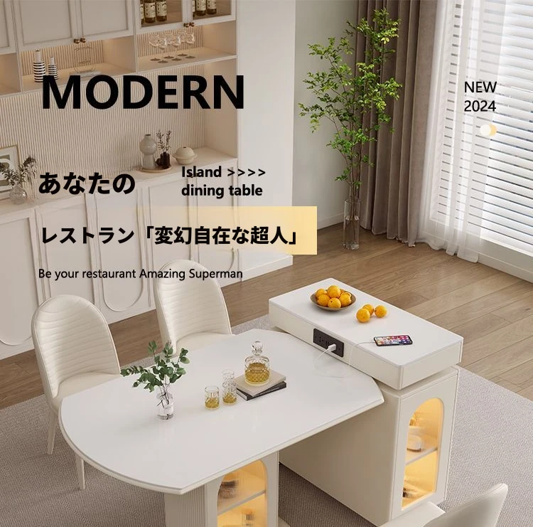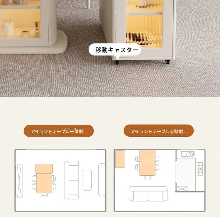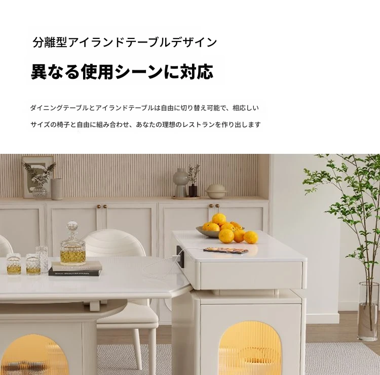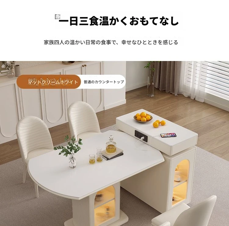 1.3mダイニングテーブル+アイランド台+椅子*4(普通のコンセント+電磁調理器+電気ケトル+茶盤)
