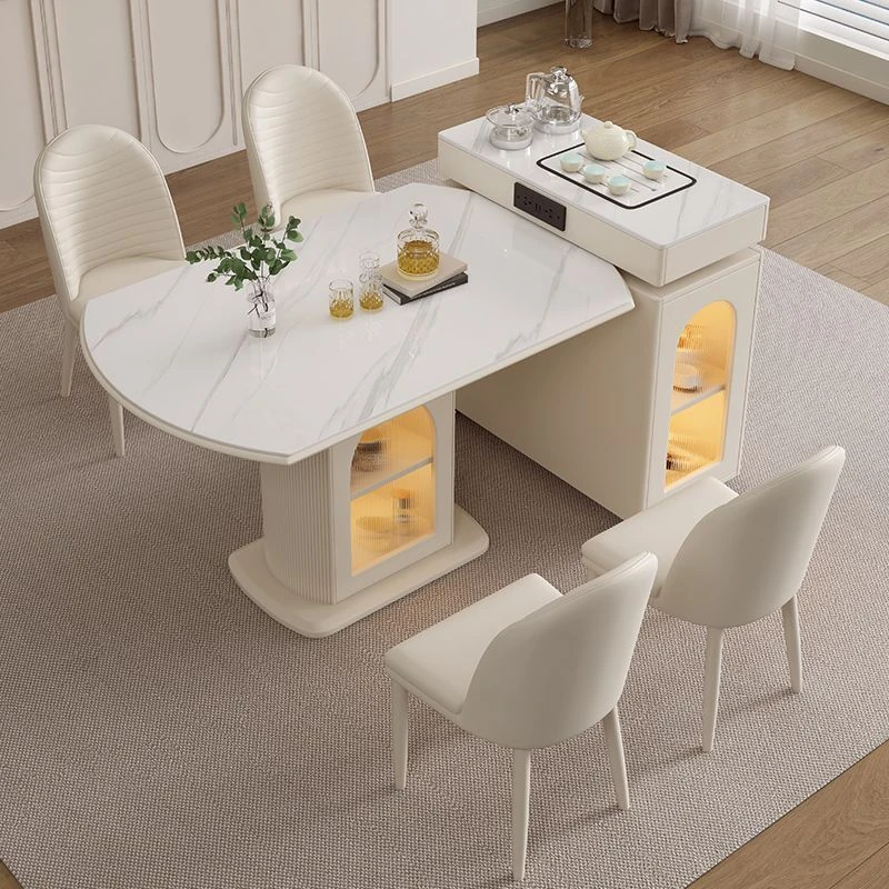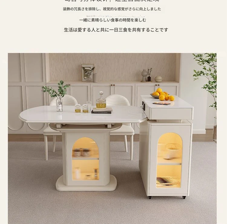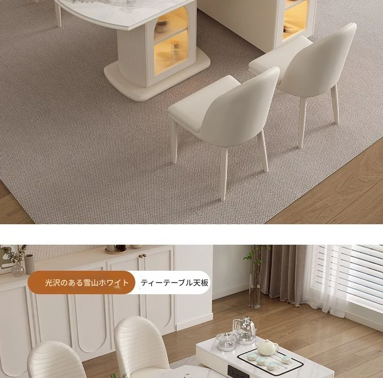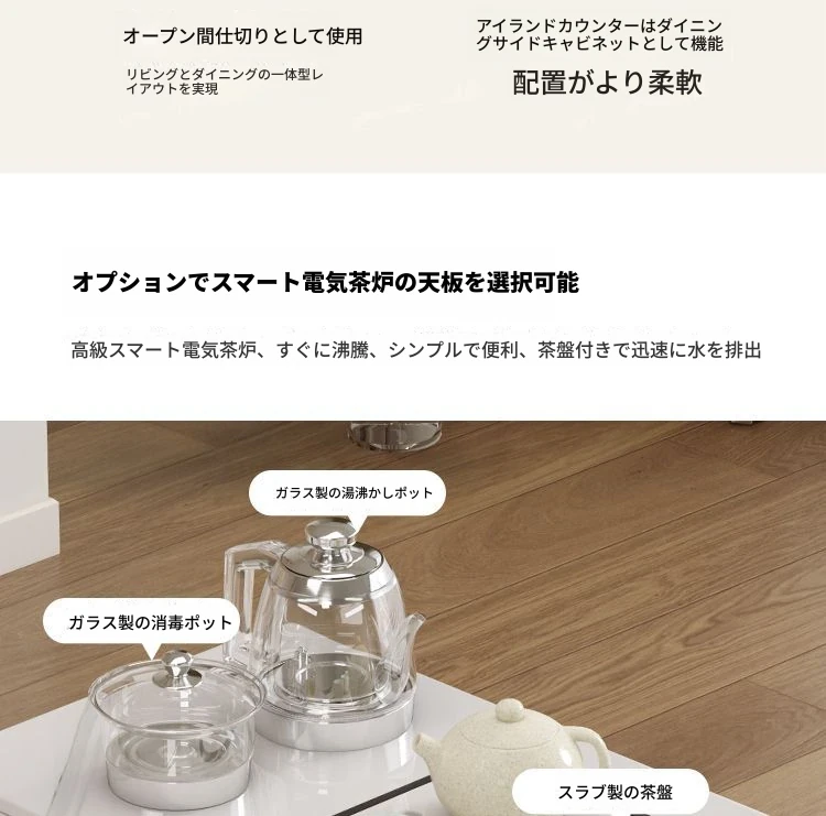 1.3mダイニングテーブル+アイランド台+椅子*4(トラックコンセント+電磁調理器+電気ケトル+茶盤)