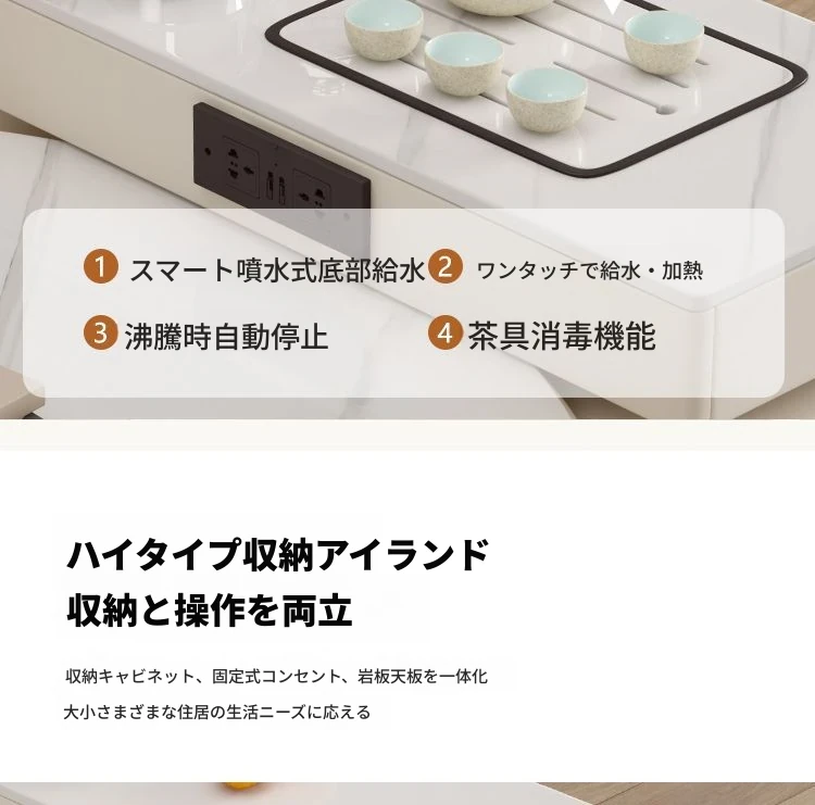 1.3mダイニングテーブル+アイランド台(普通のコンセント+電磁調理器+電気ケトル+茶盤)