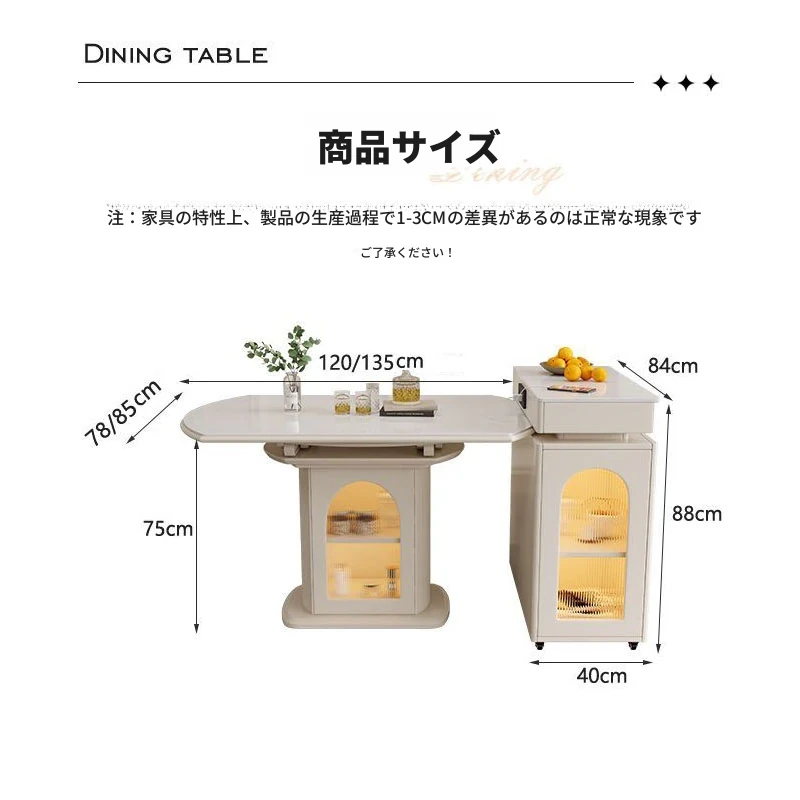 1.3mダイニングテーブル+アイランド台(トラックコンセント+電磁調理器+電気ケトル+茶盤)