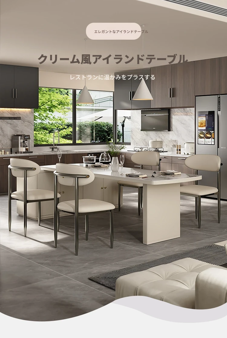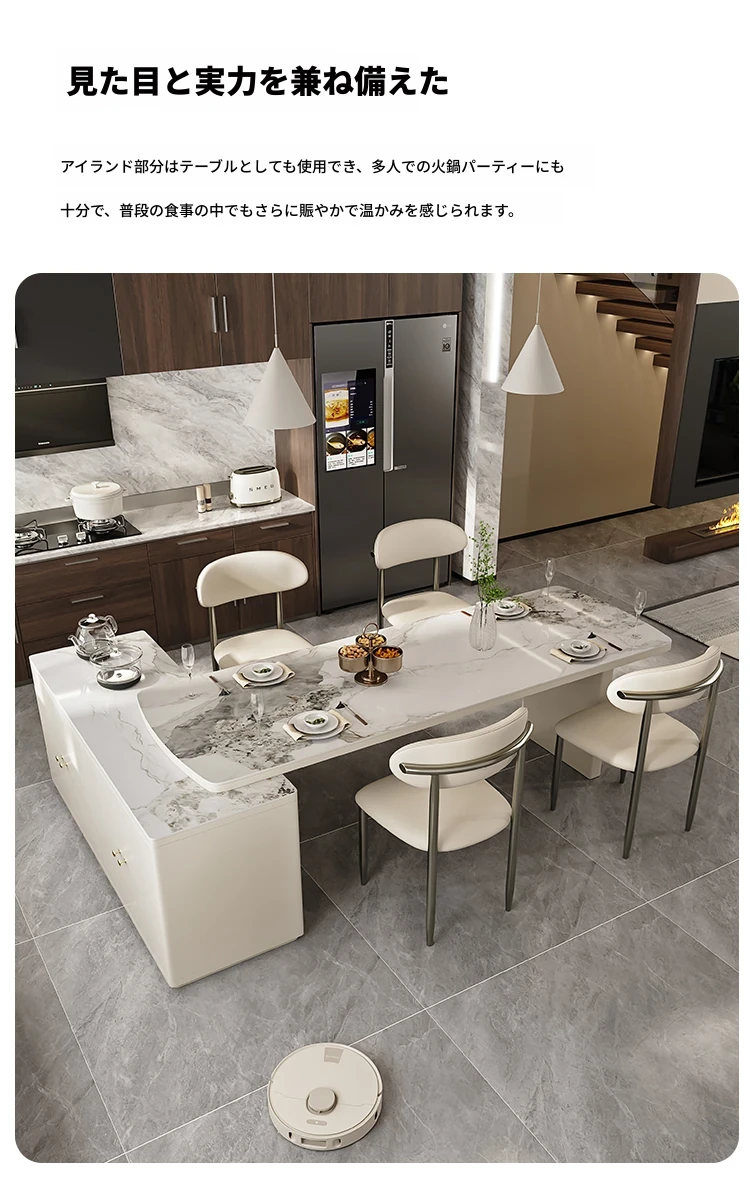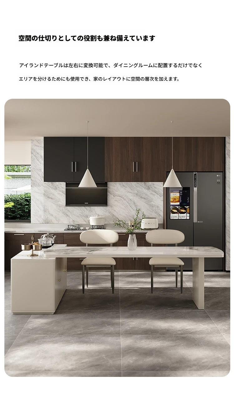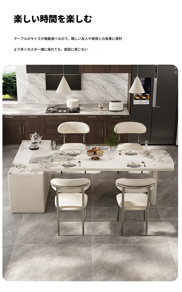 洗練されたデザインのアイランドテーブル、伸縮可能で多機能!小型住宅にぴったりなモダンスタイルの軽奢オフィス兼用ダイニングテーブル。家族や友人との素敵なひとときを演出します!
