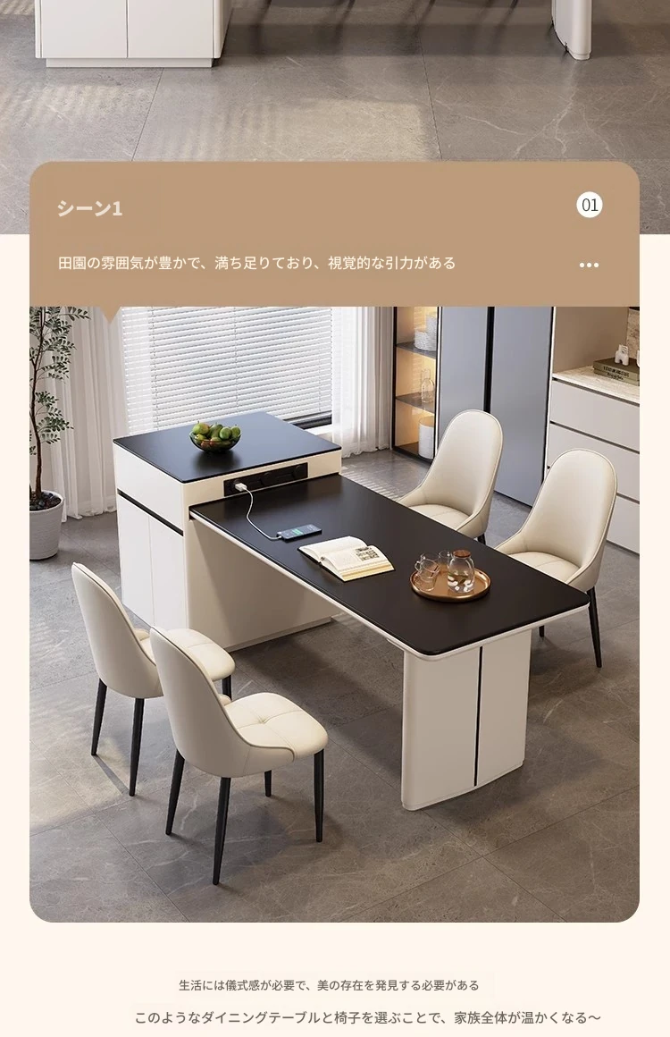 CT31アイランドテーブル【お茶用+電磁炉+レールソケット】+ベーカリーチェア*4