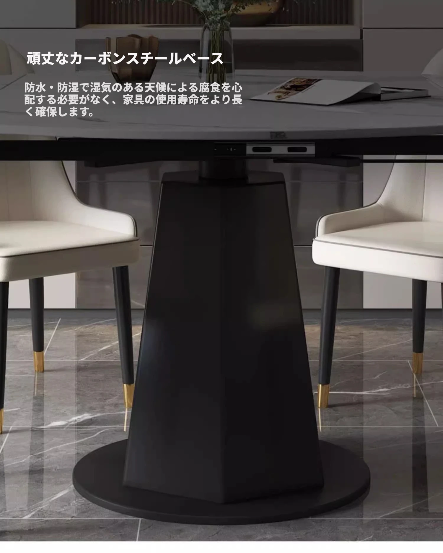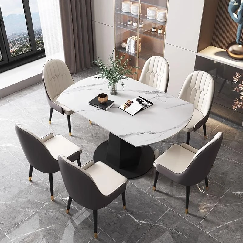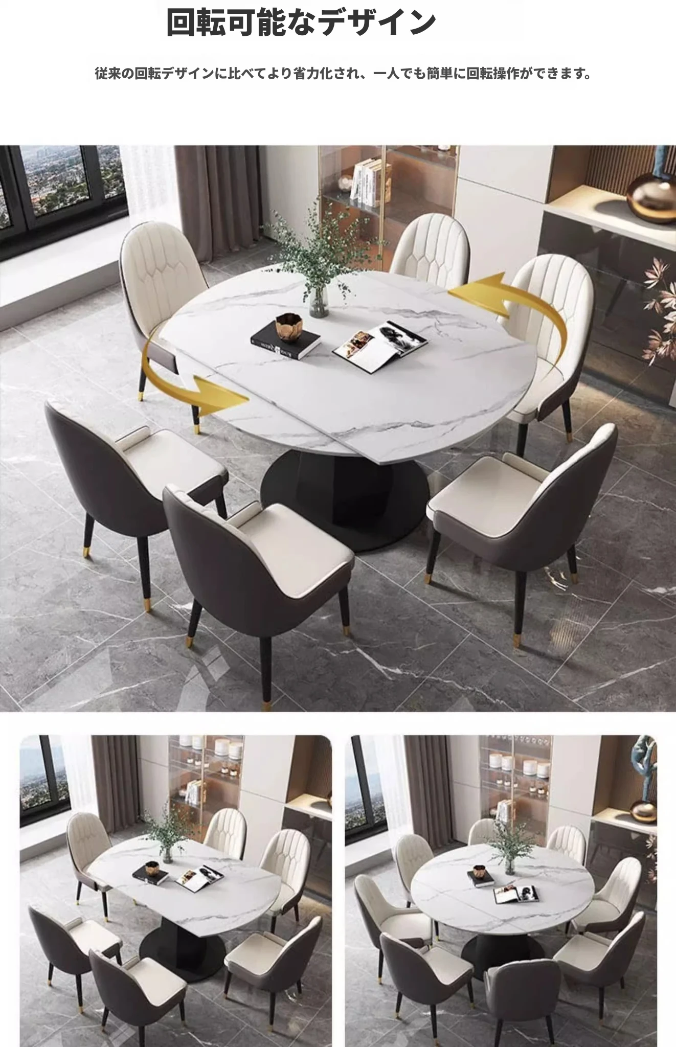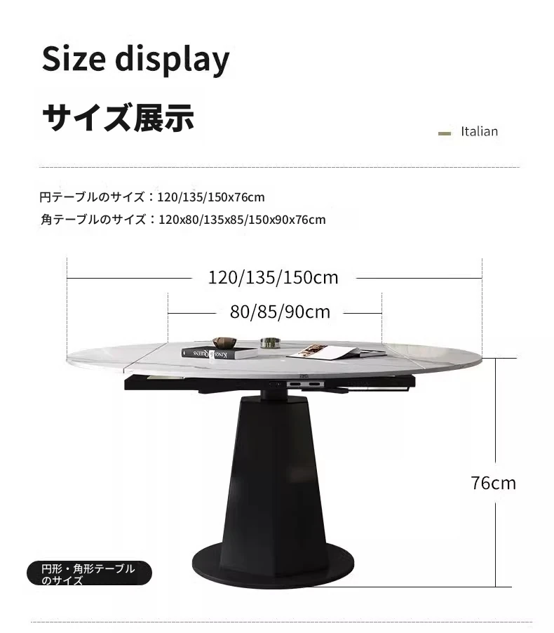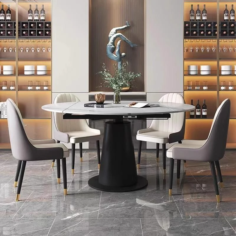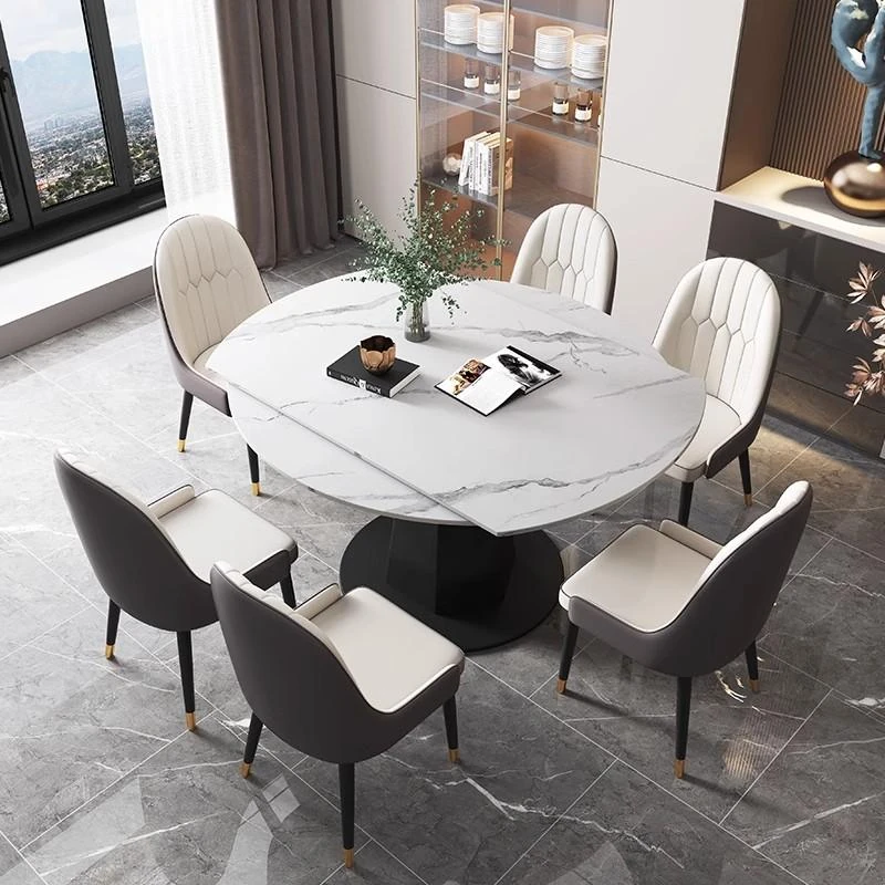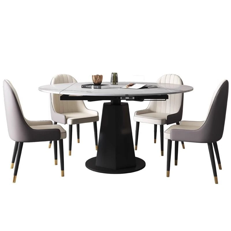 モダンでシンプルな岩板ダイニングテーブルセット、伸縮可能で折りたたみ式の軽奢スタイル。小さなスペースにもぴったりな回転式ラウンドテーブル!家族や友人との楽しい食事シーンを演出します。