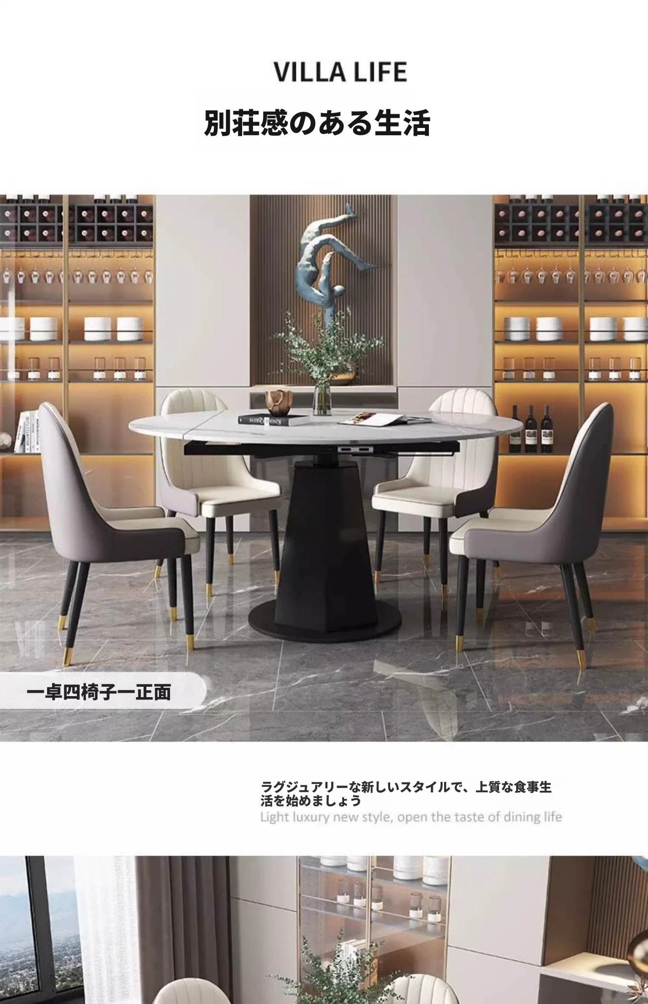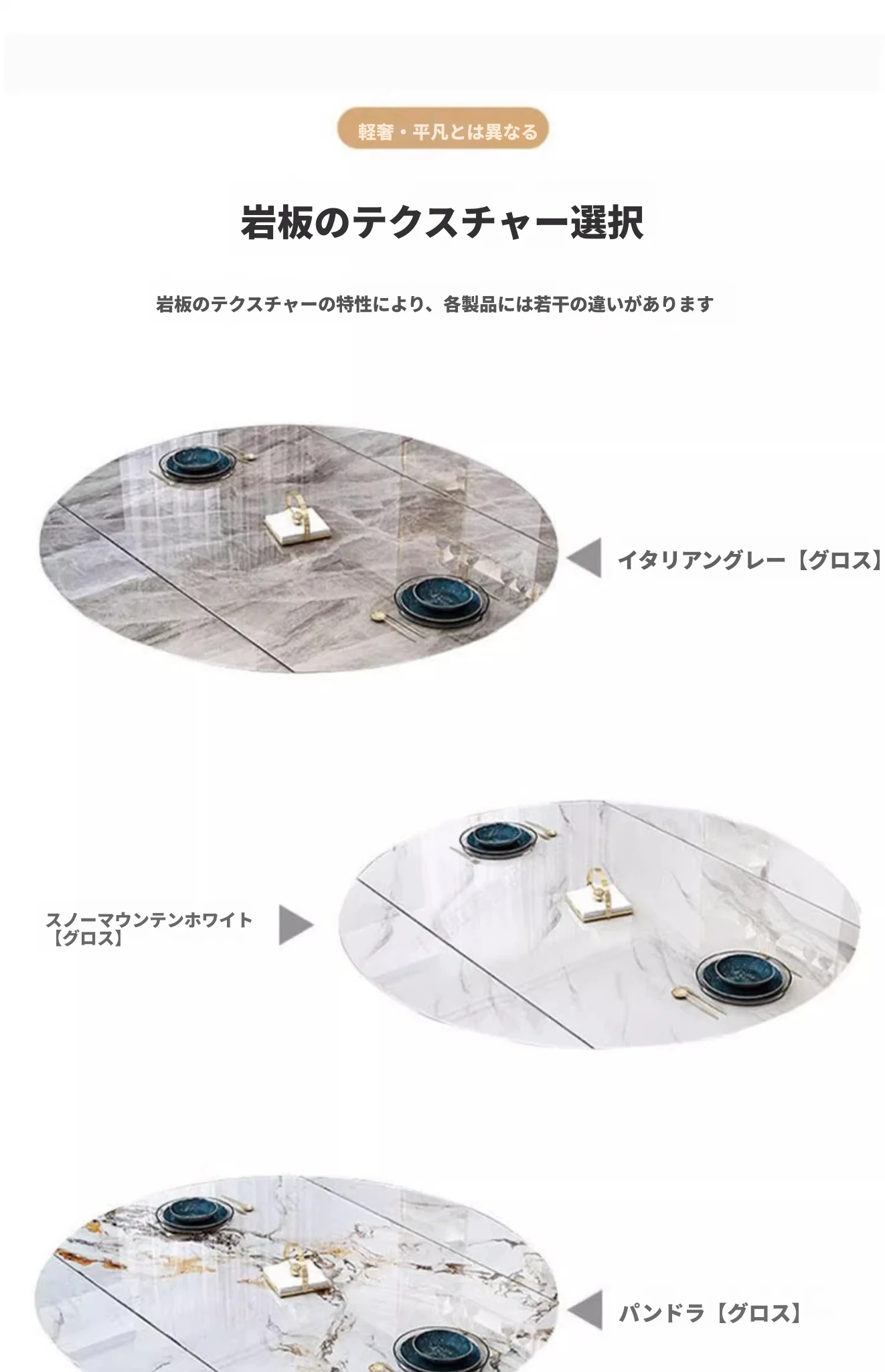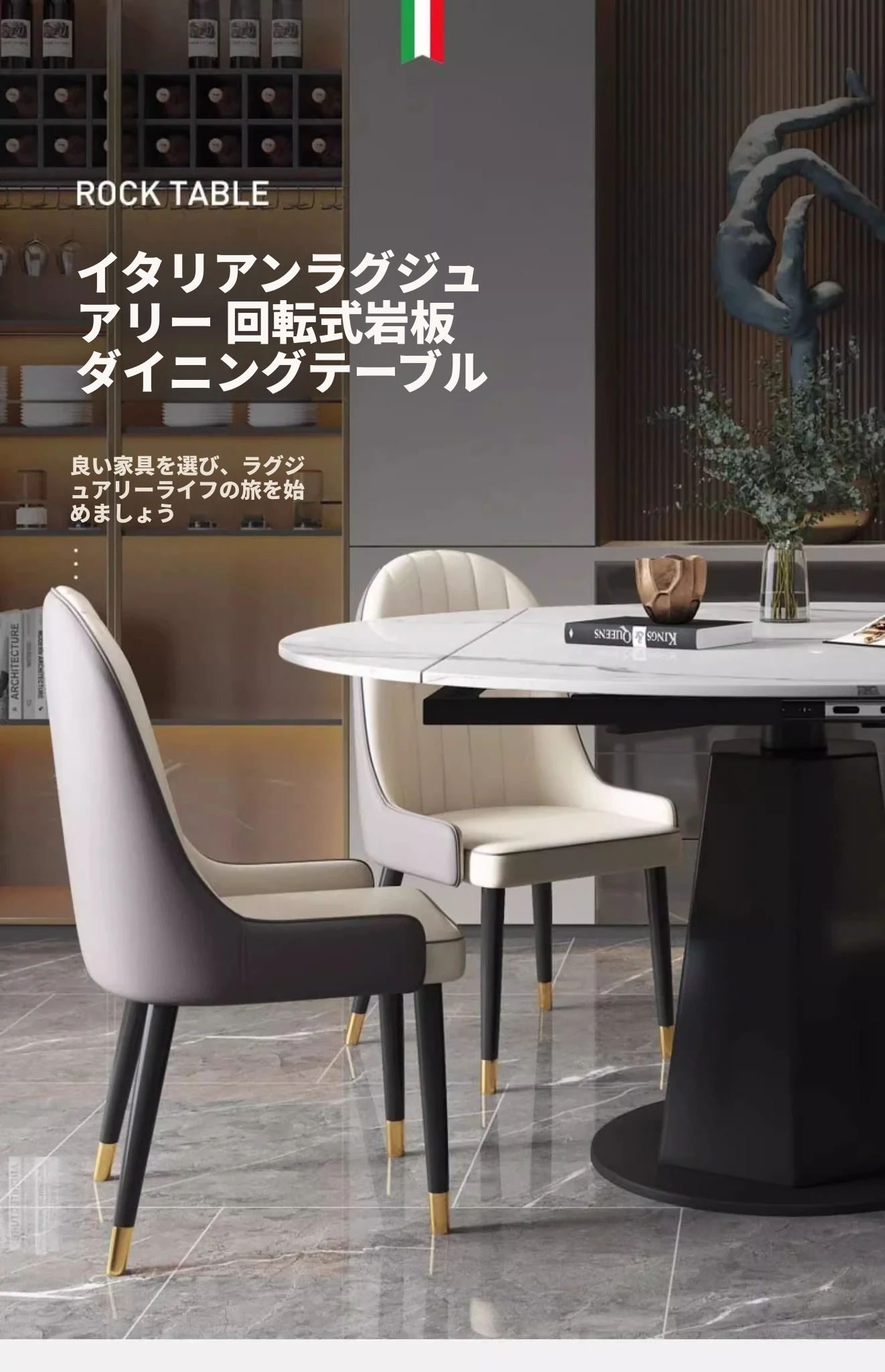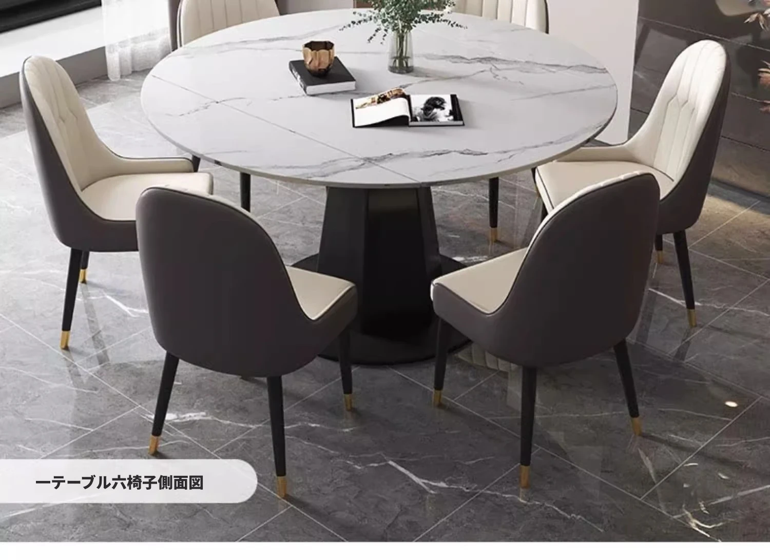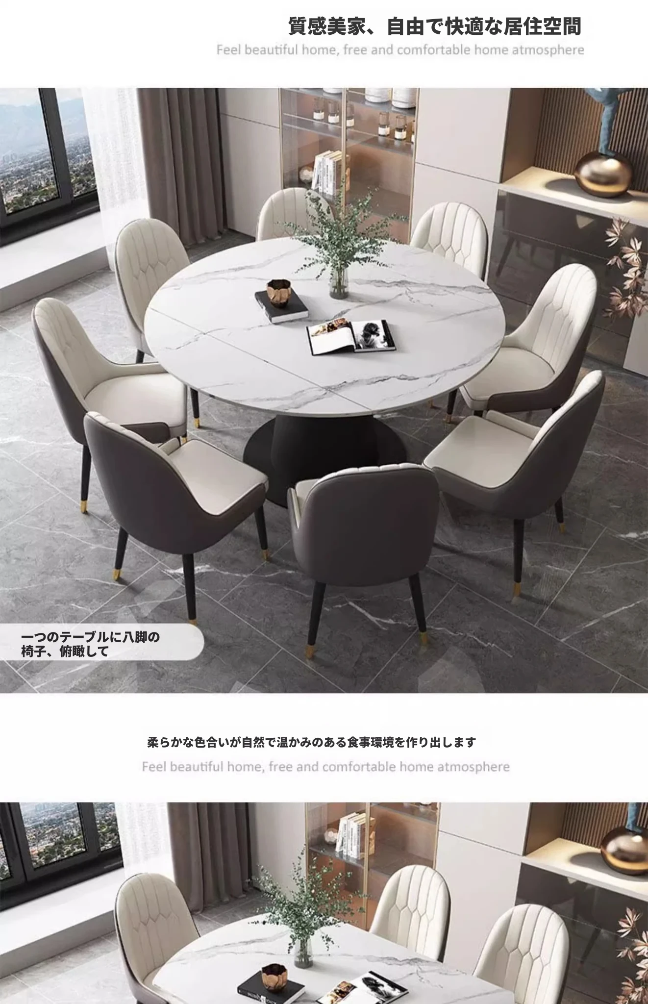 モダンでシンプルな岩板ダイニングテーブルセット、伸縮可能で折りたたみ式の軽奢スタイル。小さなスペースにもぴったりな回転式ラウンドテーブル!家族や友人との楽しい食事シーンを演出します。