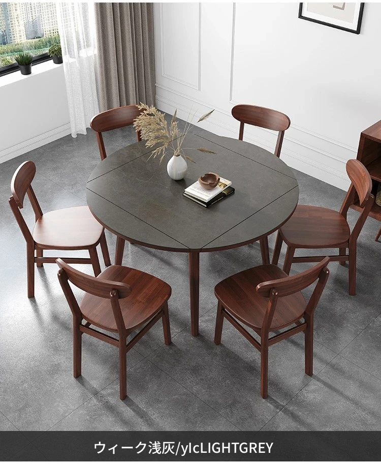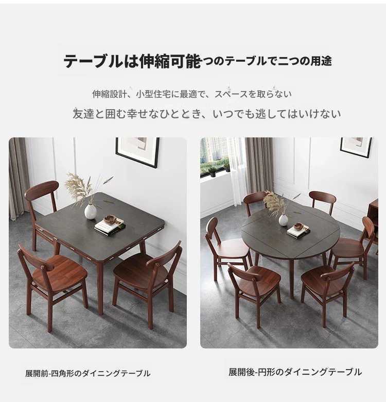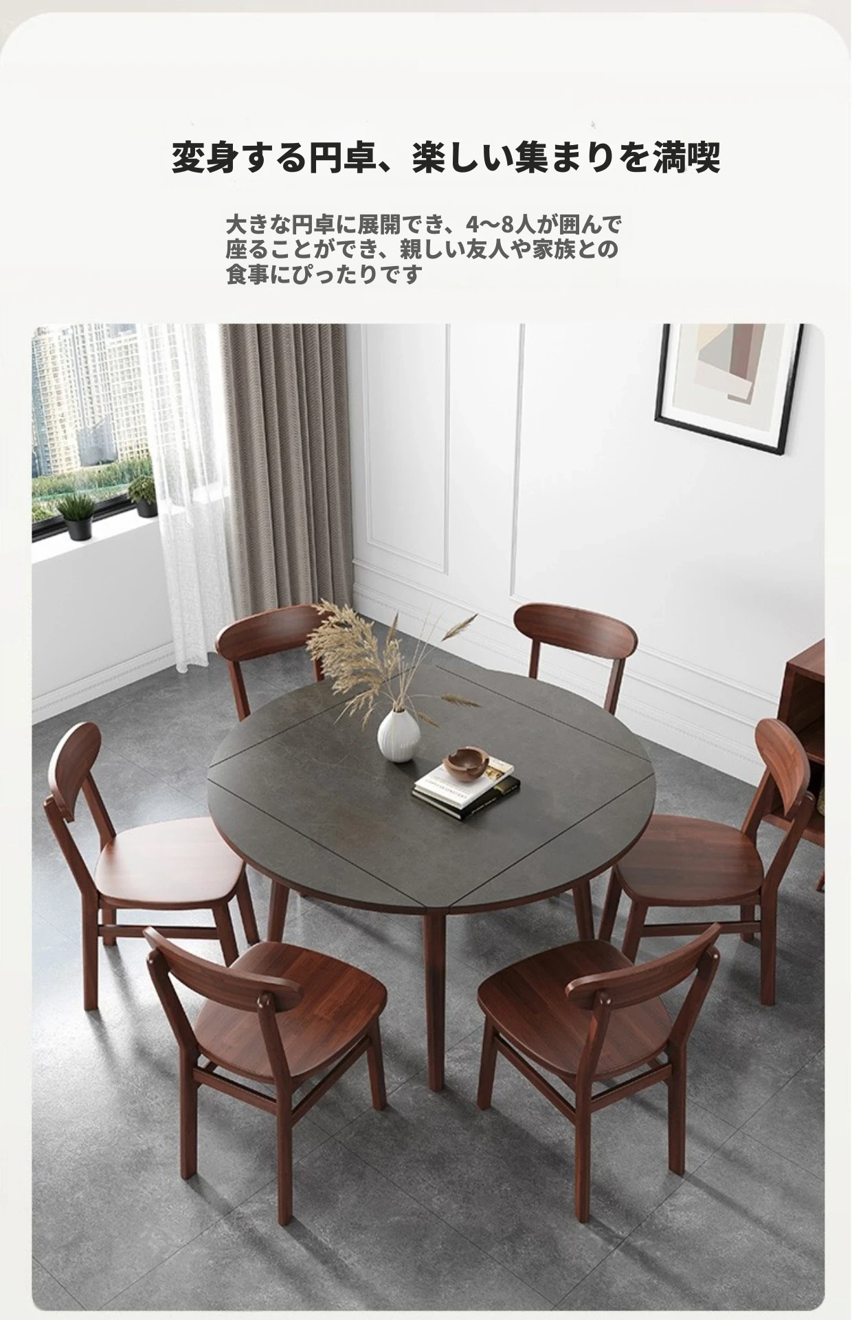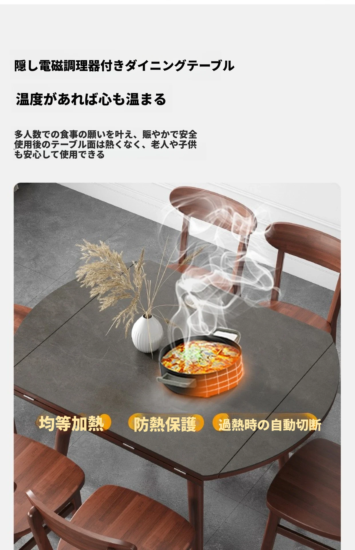 モダンでシンプルなデザインの岩板ダイニングテーブル、家族向けの小型住宅に最適!伸縮可能で折りたたみ式、円形のダイニングテーブルに電磁調理器付き。スペースを有効活用し、スタイリッシュな食事体験をお楽しみください!