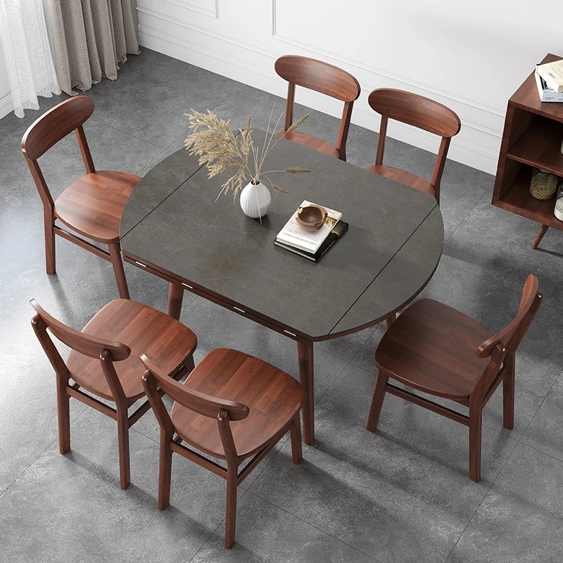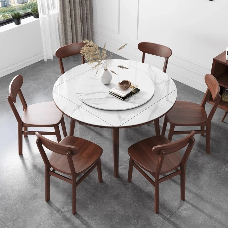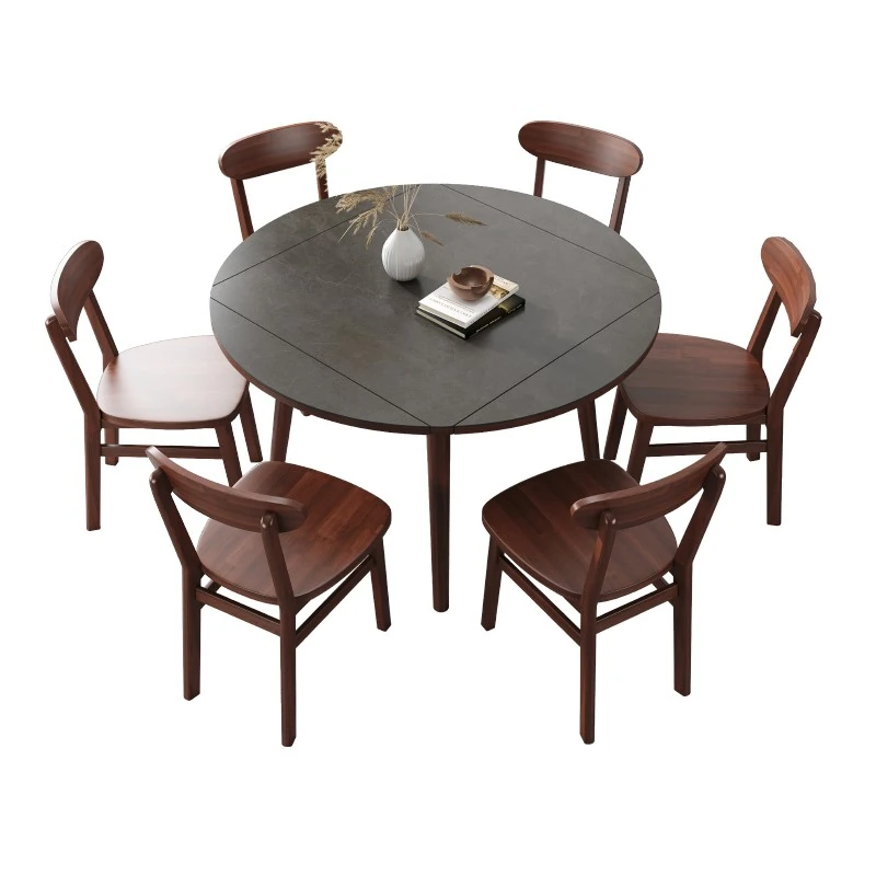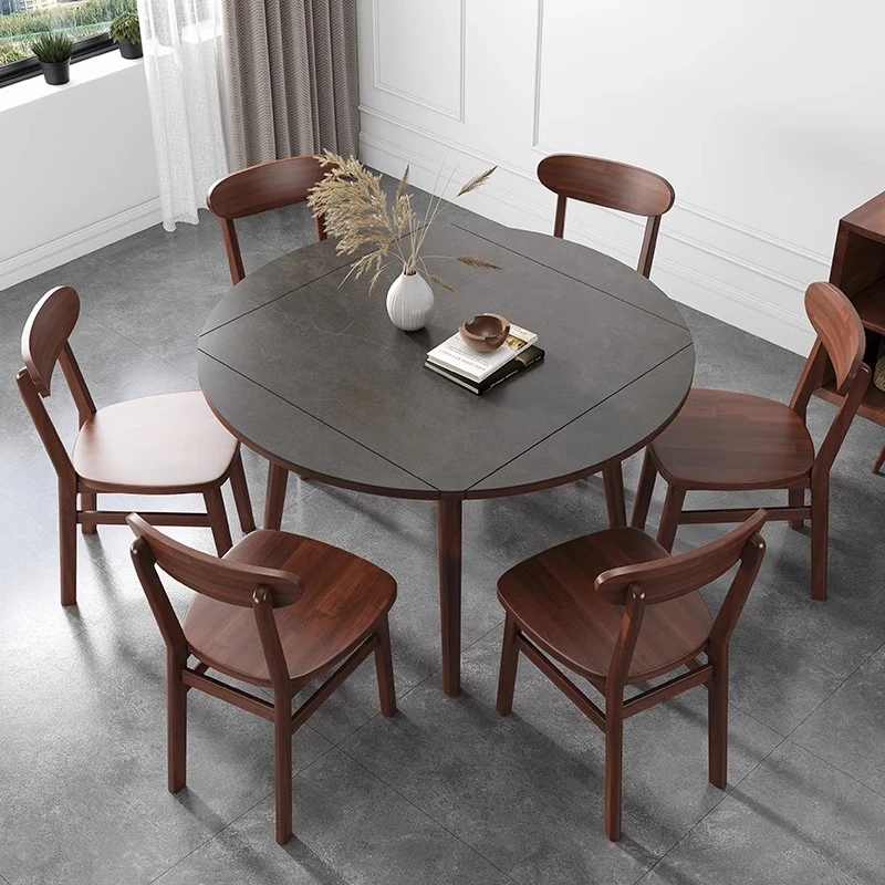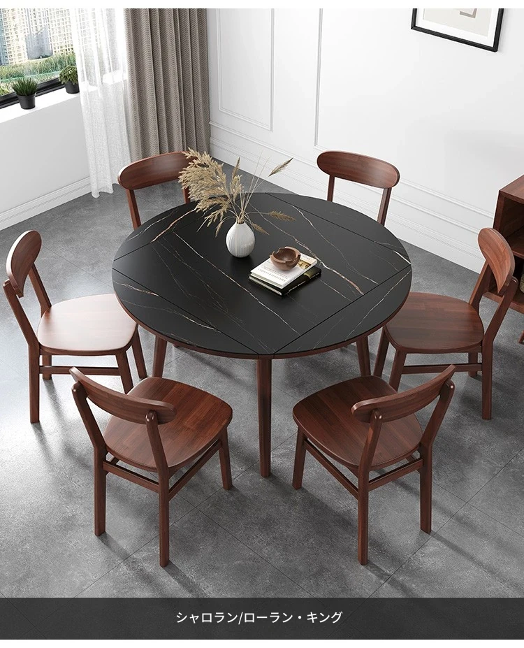 モダンでシンプルなデザインの岩板ダイニングテーブル、家族向けの小型住宅に最適!伸縮可能で折りたたみ式、円形のダイニングテーブルに電磁調理器付き。スペースを有効活用し、スタイリッシュな食事体験をお楽しみください!