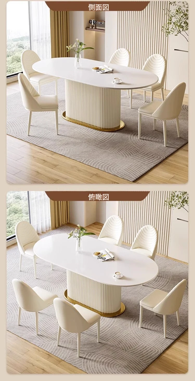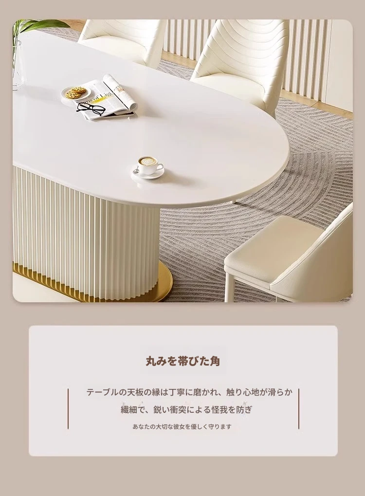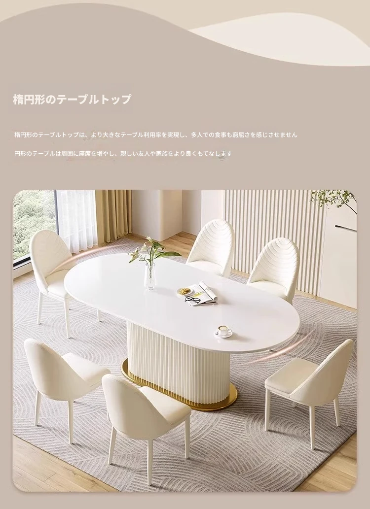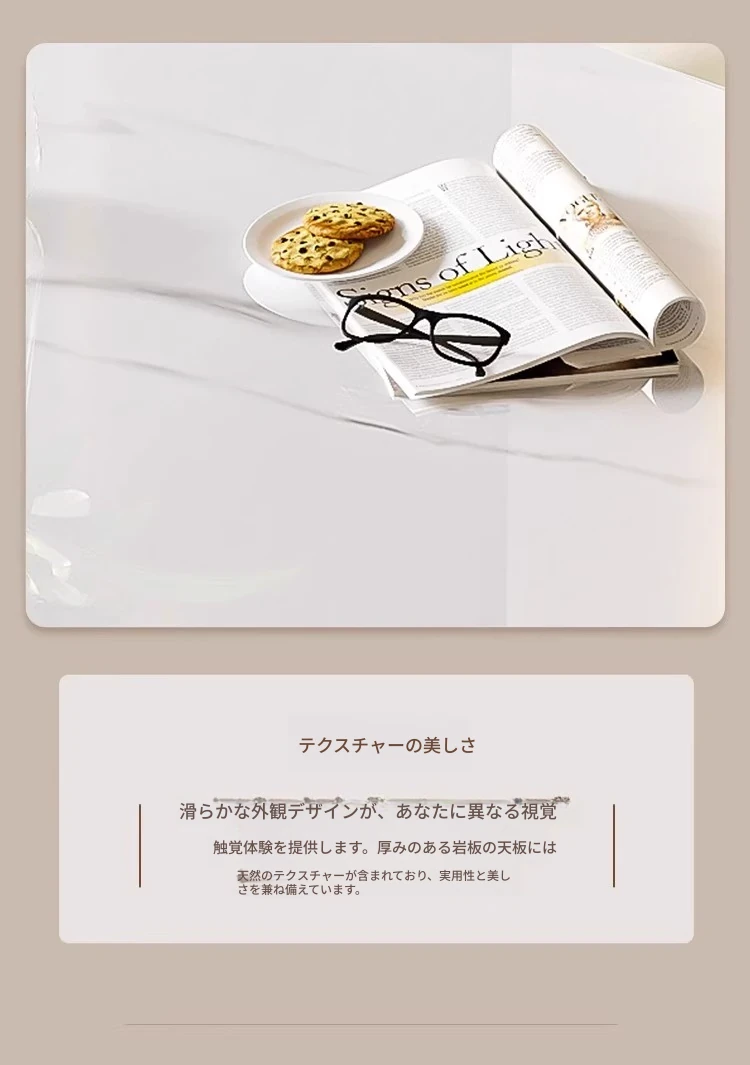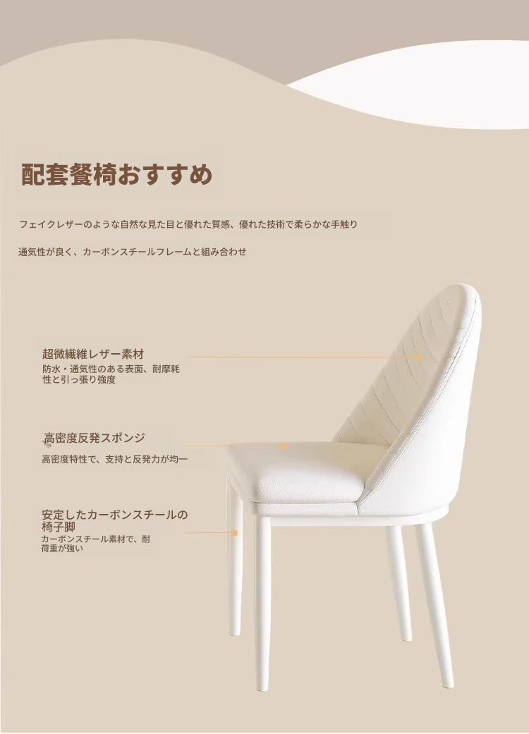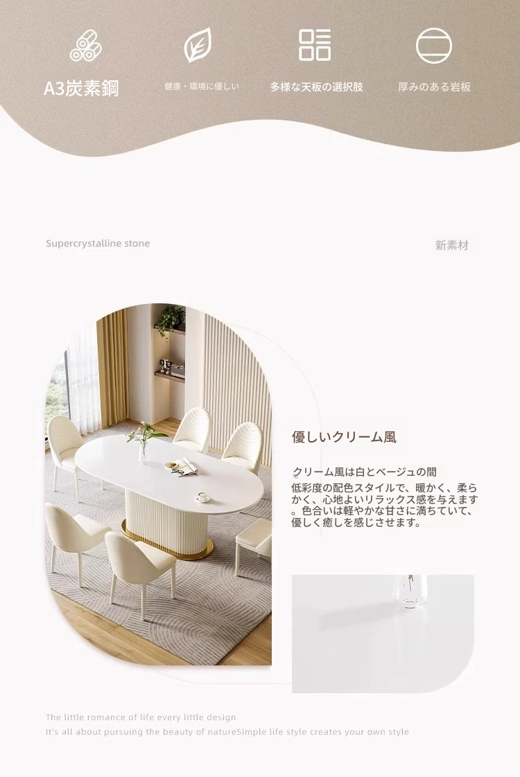 モダンでシンプルなライトラグジュアリー、クリーム色の石板ダイニングテーブル&チェアセット。小さな住居にもぴったりなアイランドテーブル、白の西洋風ダイニングテーブルで、スタイリッシュな食卓を演出します!