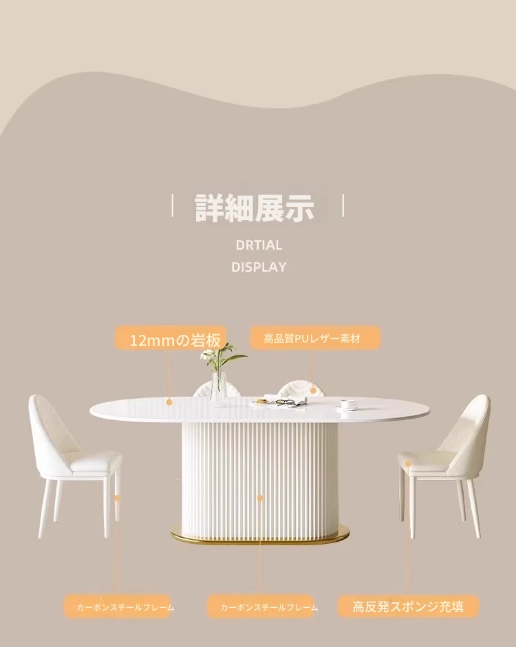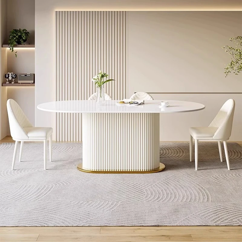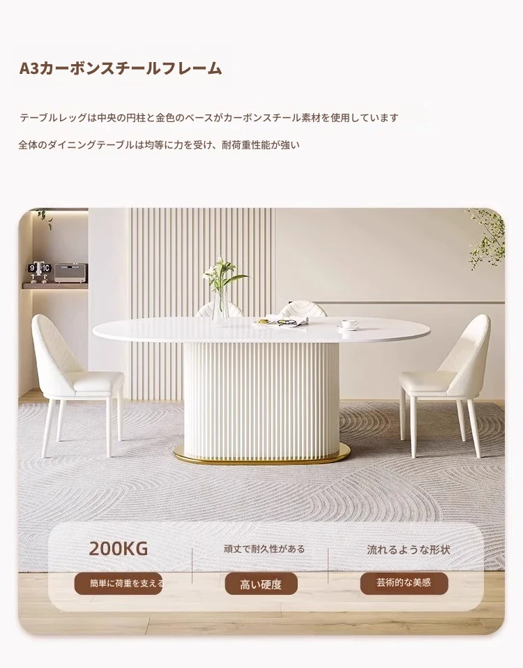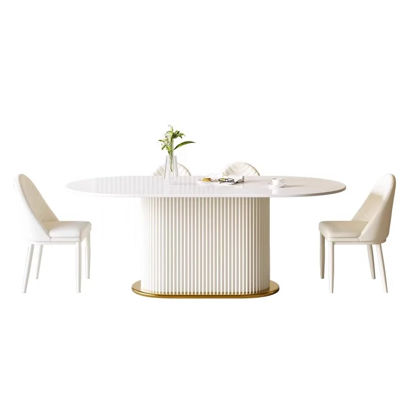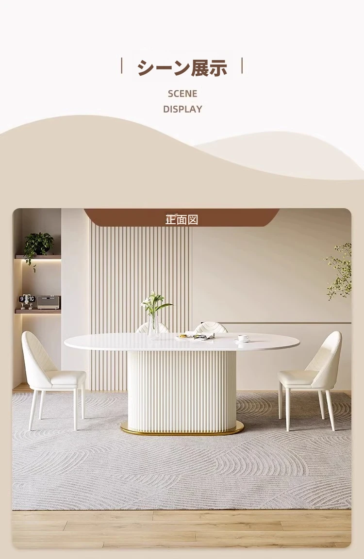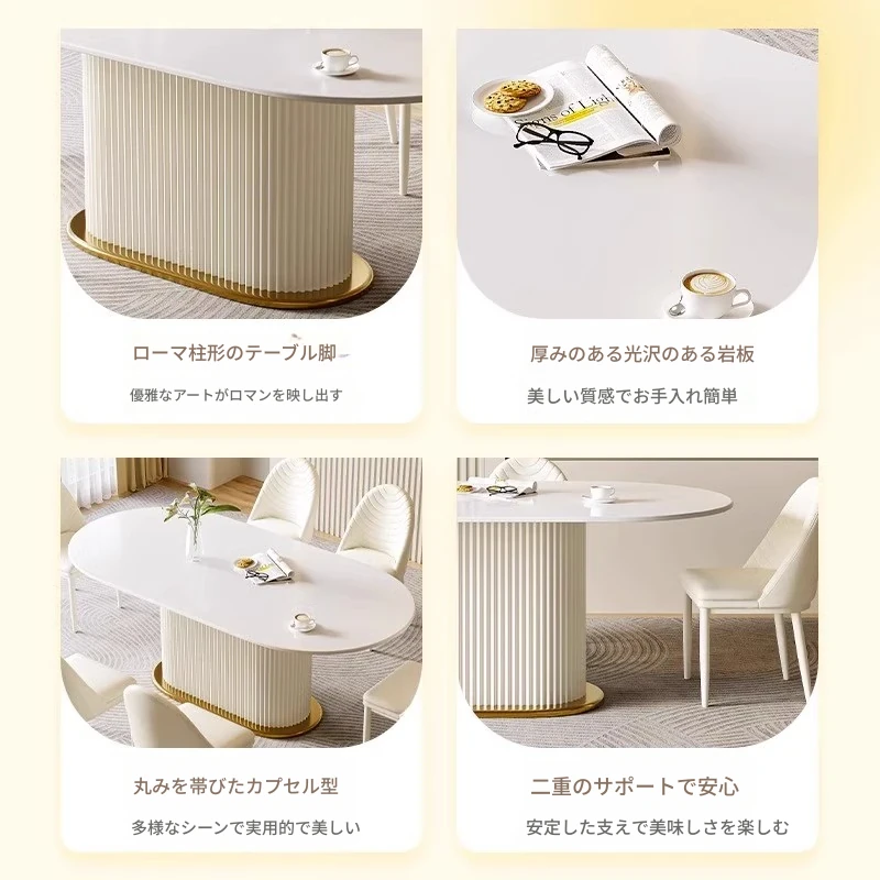 モダンでシンプルなライトラグジュアリー、クリーム色の石板ダイニングテーブル&チェアセット。小さな住居にもぴったりなアイランドテーブル、白の西洋風ダイニングテーブルで、スタイリッシュな食卓を演出します!