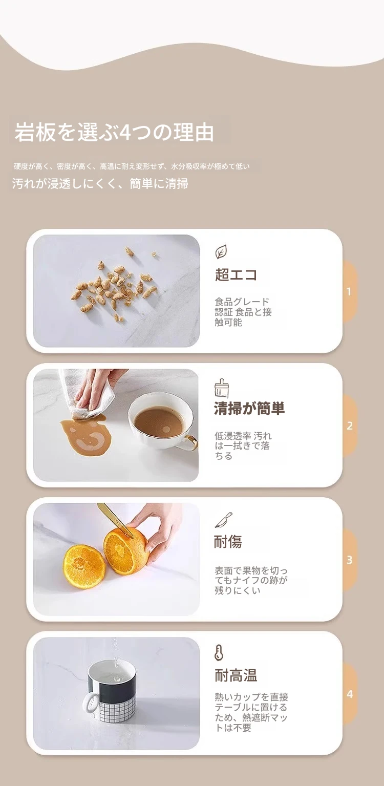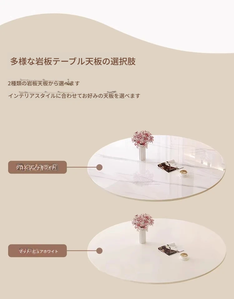 クリーム風岩板ダイニングテーブル【12mm岩板】