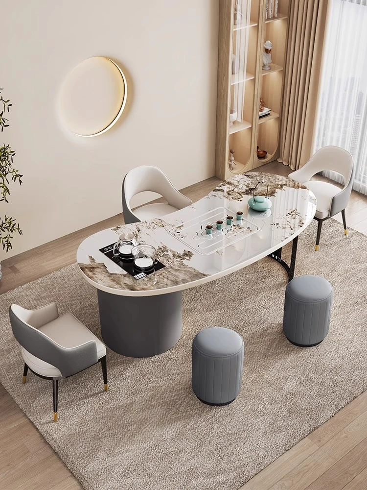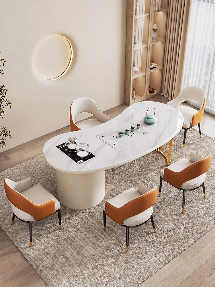 CT283岩板茶卓+ラグジュアリー椅子*5(全自動ステンレス製ティーポット付き)