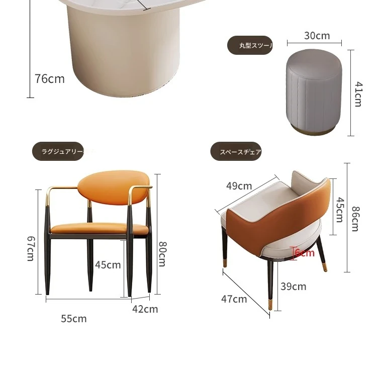 CT283岩板茶卓+3ラグジュアリー椅子+2丸凳(全自動ステンレス製ティーポット付き)