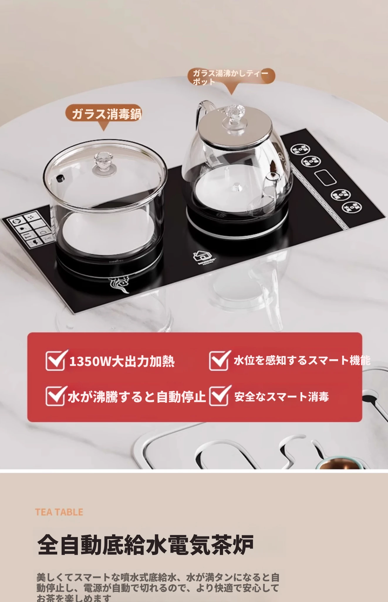CT283岩板茶卓(全自動ステンレス製ティーポット付き)