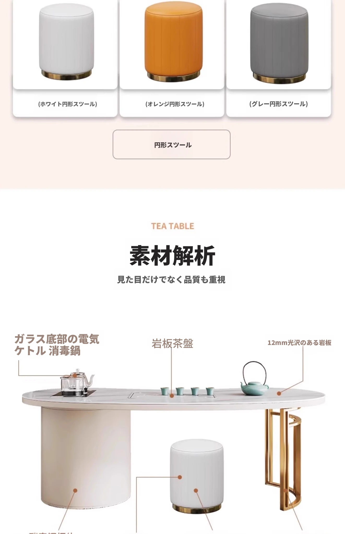 CT283岩板茶卓+1ラグジュアリー椅子+2丸凳(全自動ステンレス製ティーポット付き)