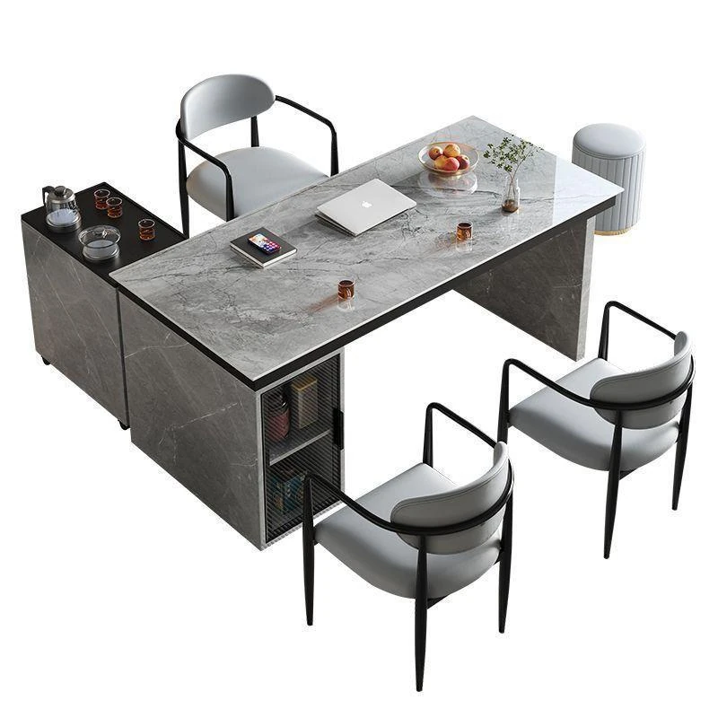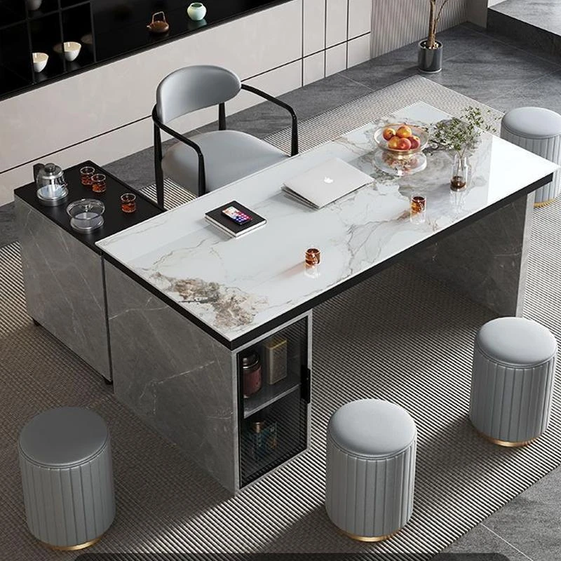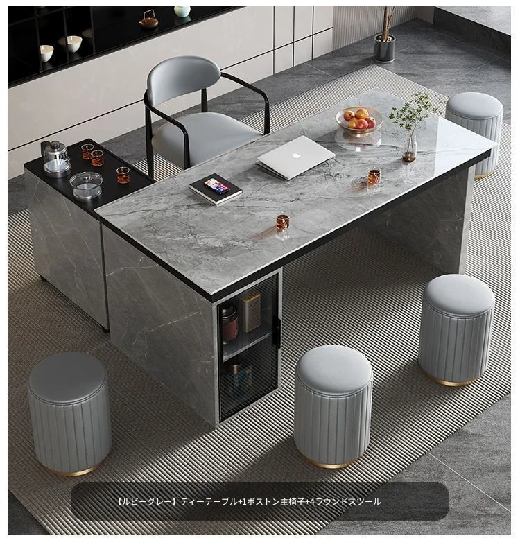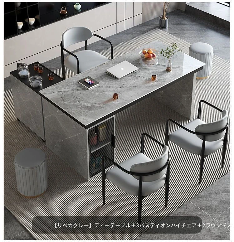 2.0*0.8mアイランドテーブル+1椅子+4丸椅子【電磁炉+湯沸かしポット付き】