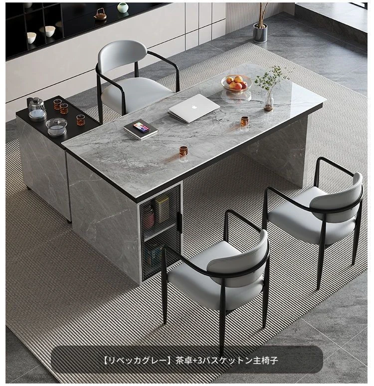 2.0*0.8mアイランドテーブル+3椅子【電磁炉+湯沸かしポット付き】
