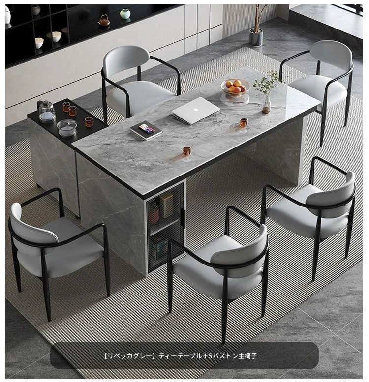 2.0*0.8mアイランドテーブル+5椅子【電磁炉+湯沸かしポット付き】