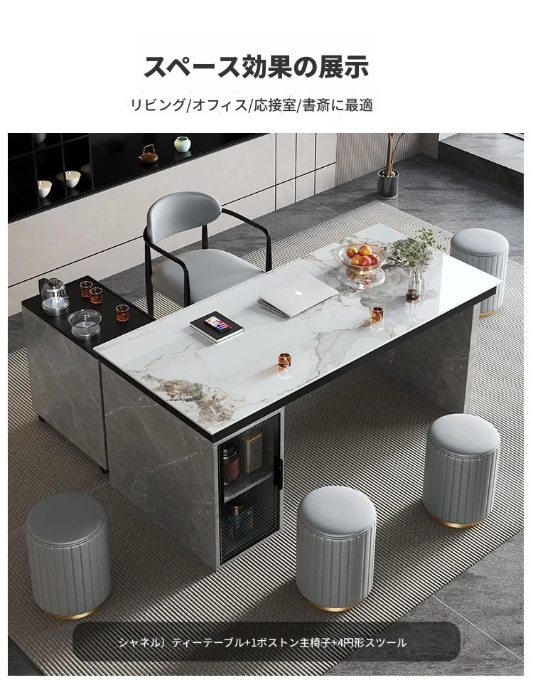 1.8*0.8mアイランドテーブル+1椅子+4丸椅子【電磁炉+湯沸かしポット付き】