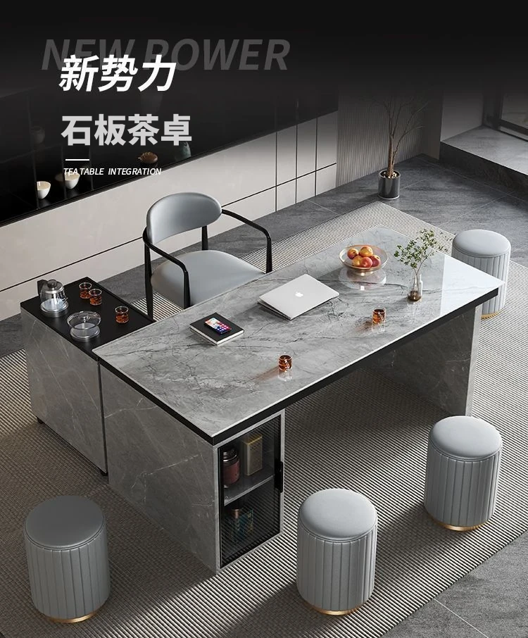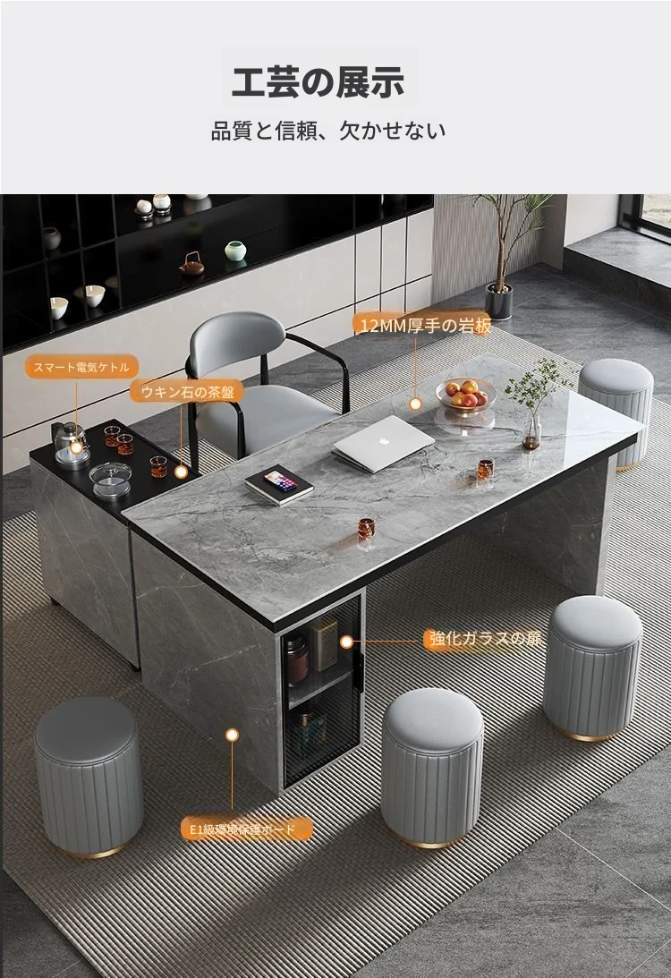 2.0*0.8mアイランドテーブル+1椅子+2丸椅子【電磁炉+湯沸かしポット付き】