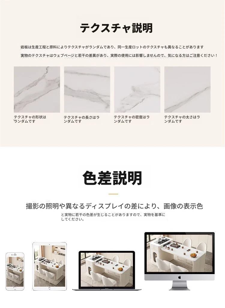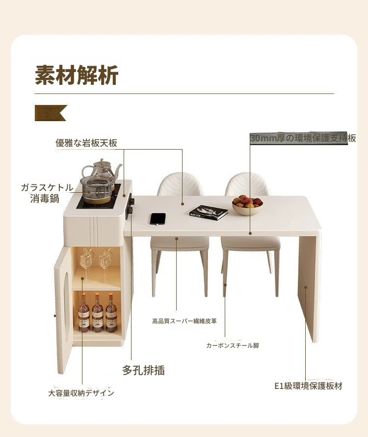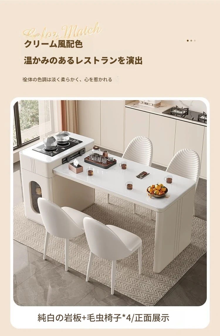 120*60cmアイランドテーブル+IHコンロ+ケトル+レールタップ+6脚の椅子