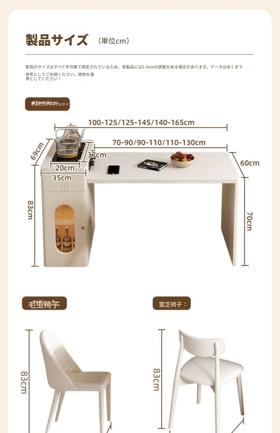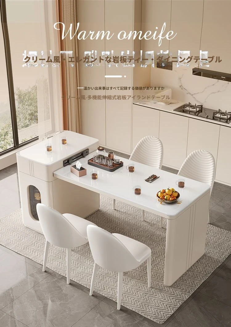 120*60cmアイランドテーブル+IHコンロ+ケトル+レールタップ+4脚の椅子